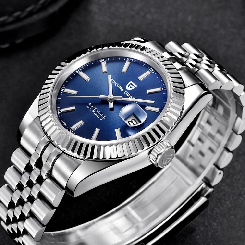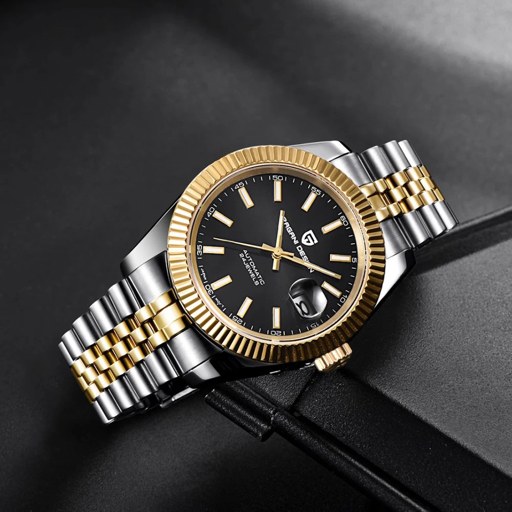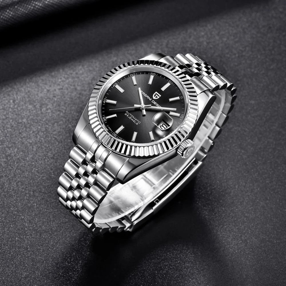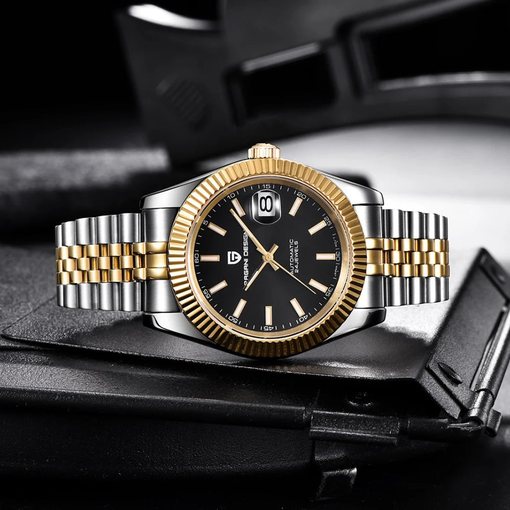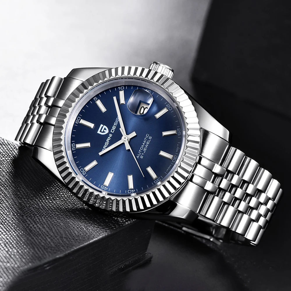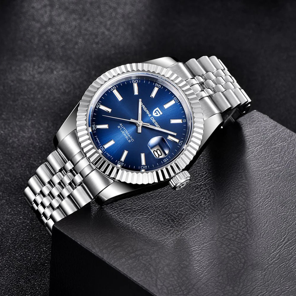 Montre homme PAGANI DESIGN Business Machinery Automatique en acier inoxydable, étanche, affichage lumineux du calendrier, coffret cadeau inclus