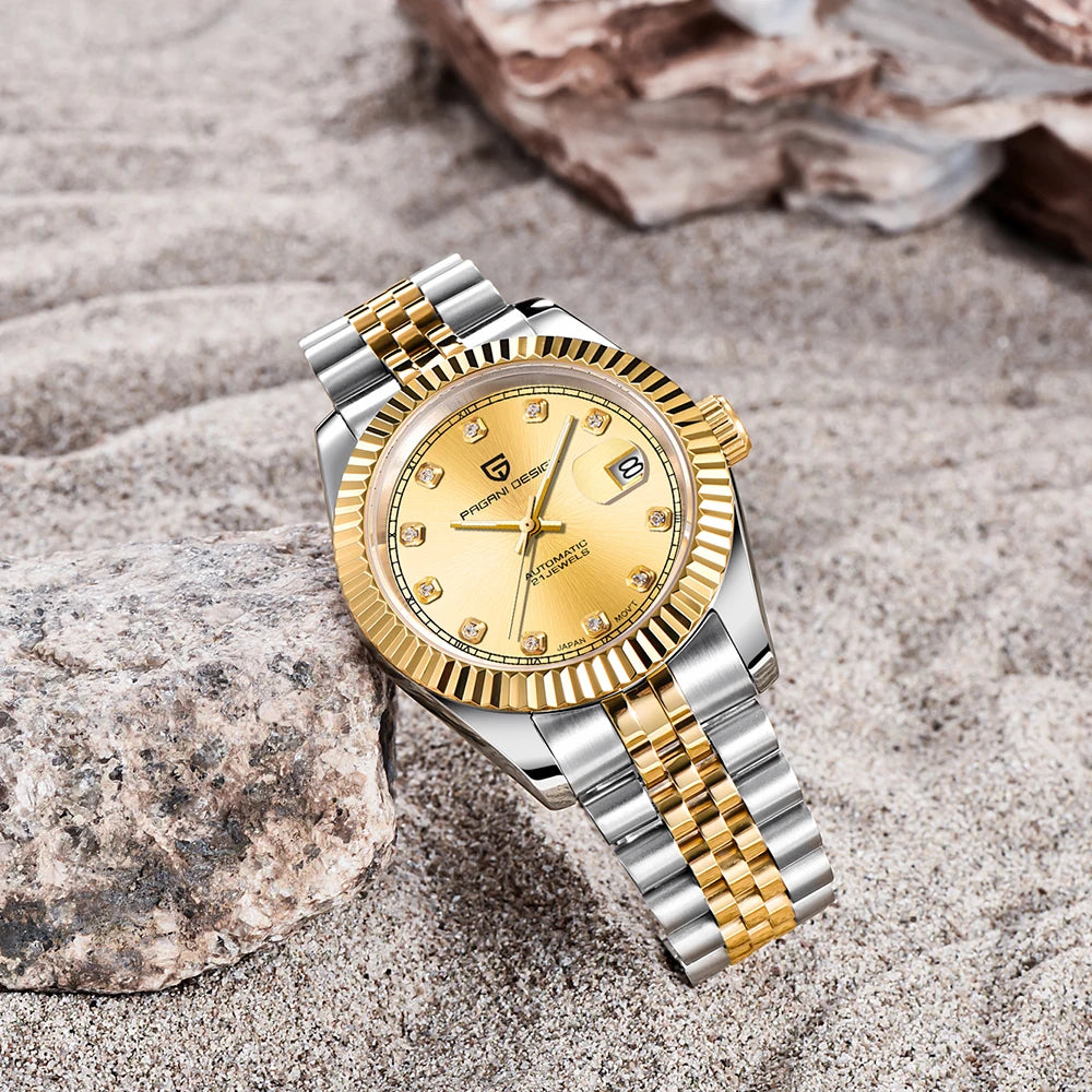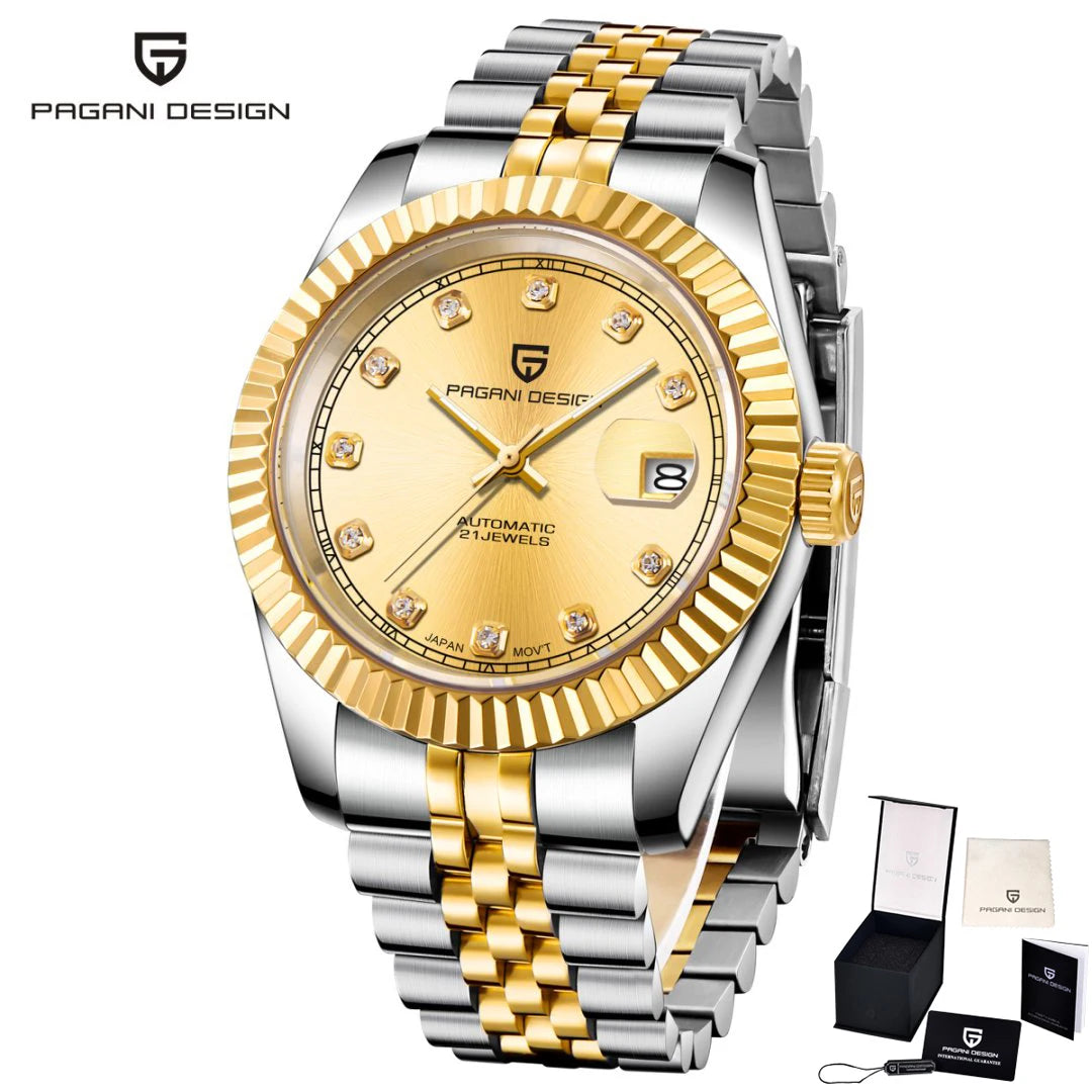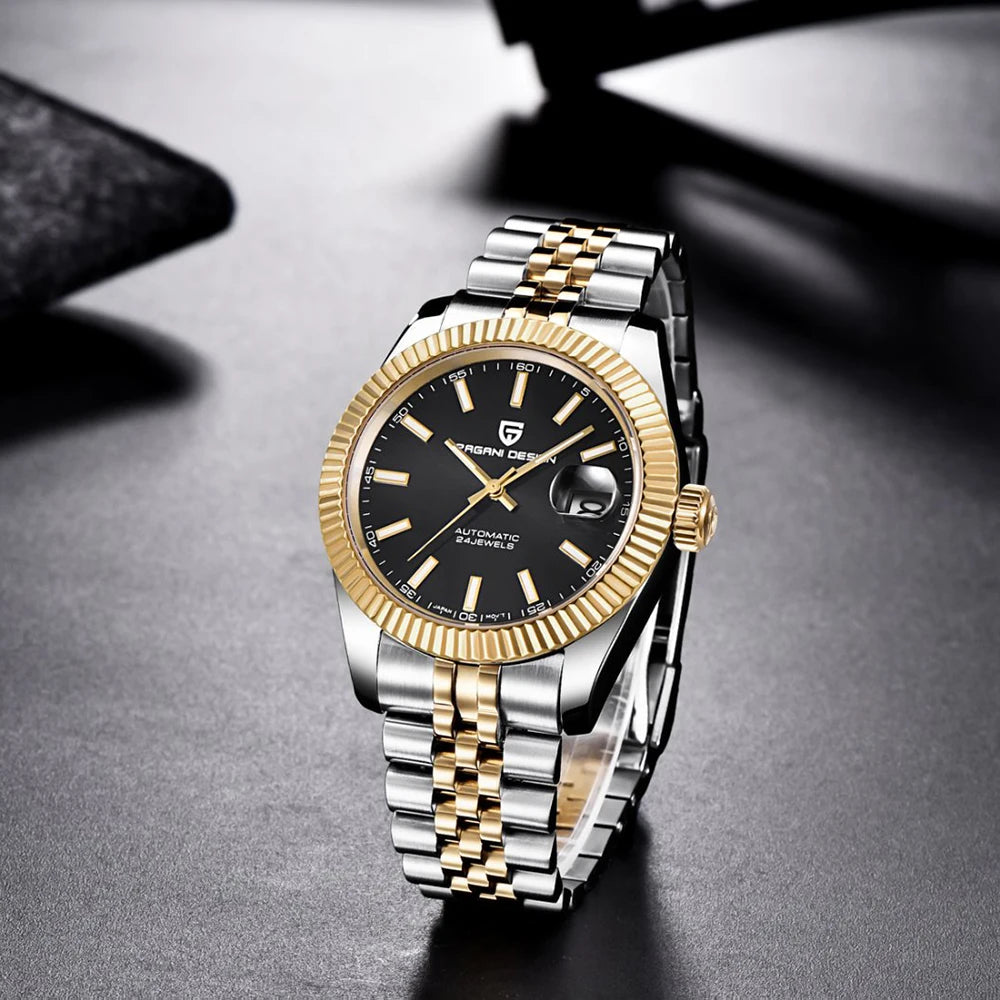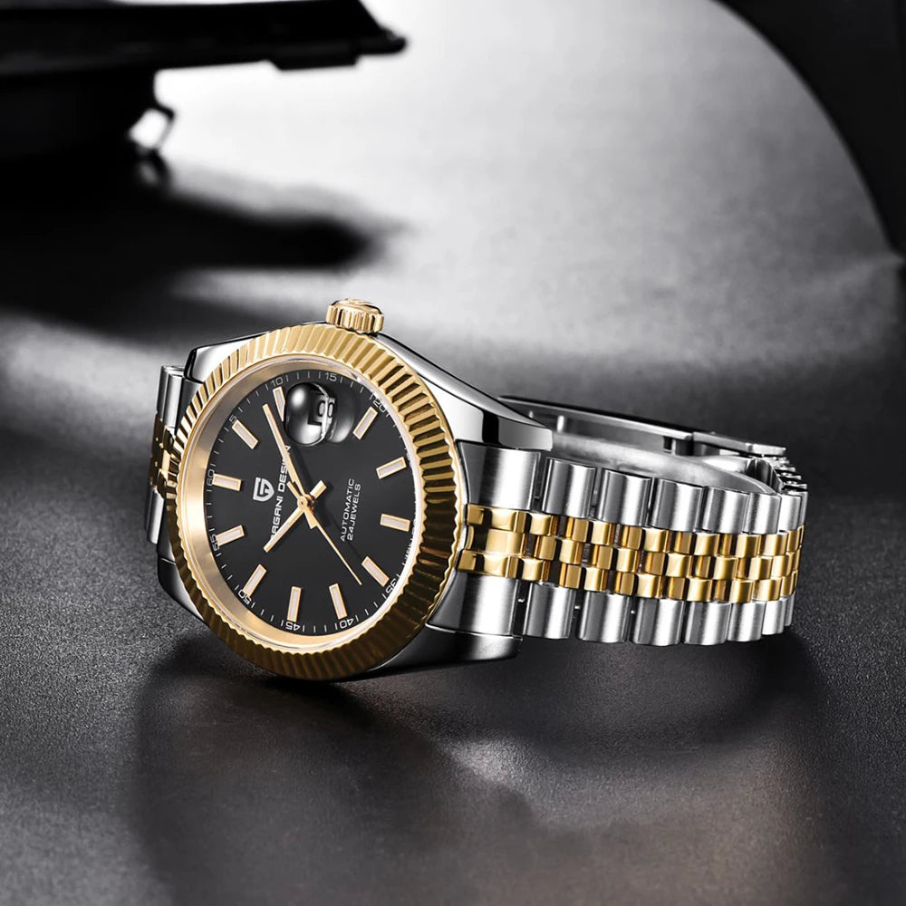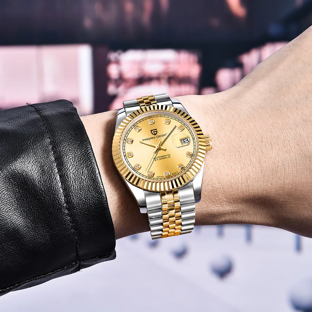 Montre homme PAGANI DESIGN Business Machinery Automatique en acier inoxydable, étanche, affichage lumineux du calendrier, coffret cadeau inclus