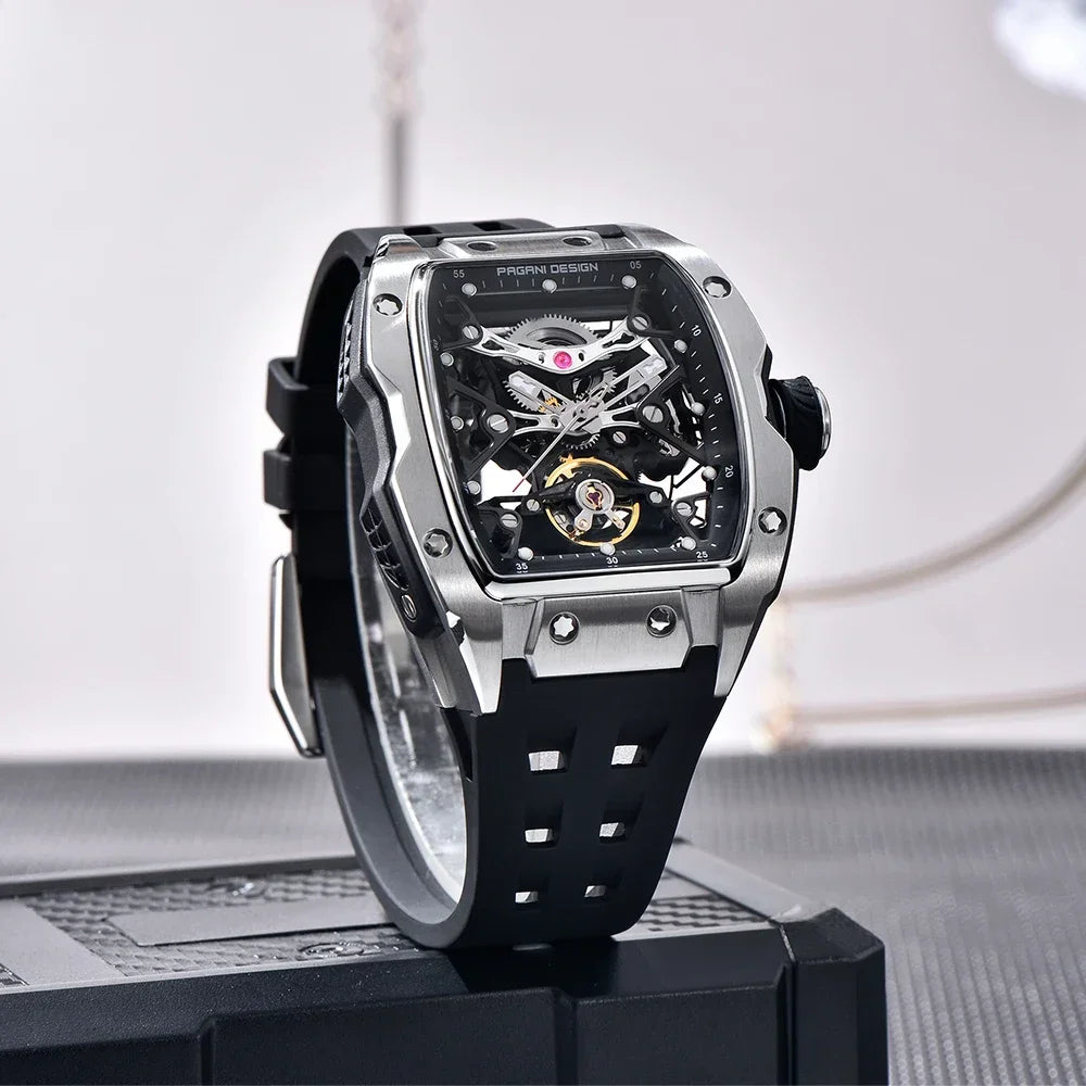 2025 new pagani design men's skeleton high-end watch rubber starp waterproof luminous fashion trend automatic mechanical watch.