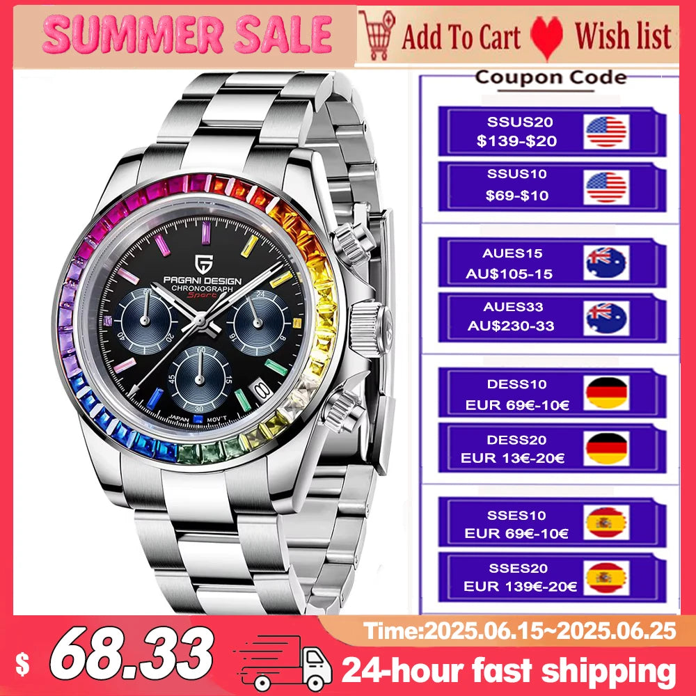 2025 New PAGANI DESIGN Rainbow Circle PD1644 Luxury Quartz Watch For Men Automatic Wristwatches Men Sport Waterproof Chronograph
