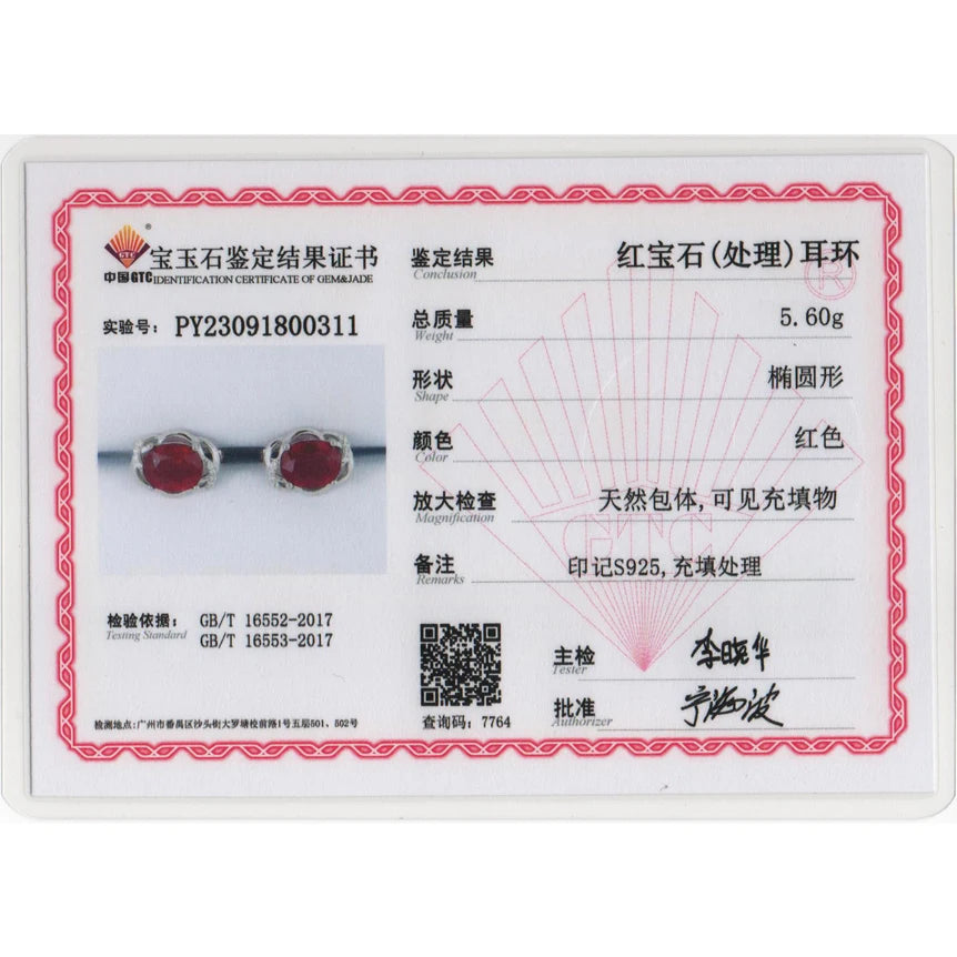 925 Sterling silver light luxury fashion natural filled ruby earrings for women's engagement anniversary gift