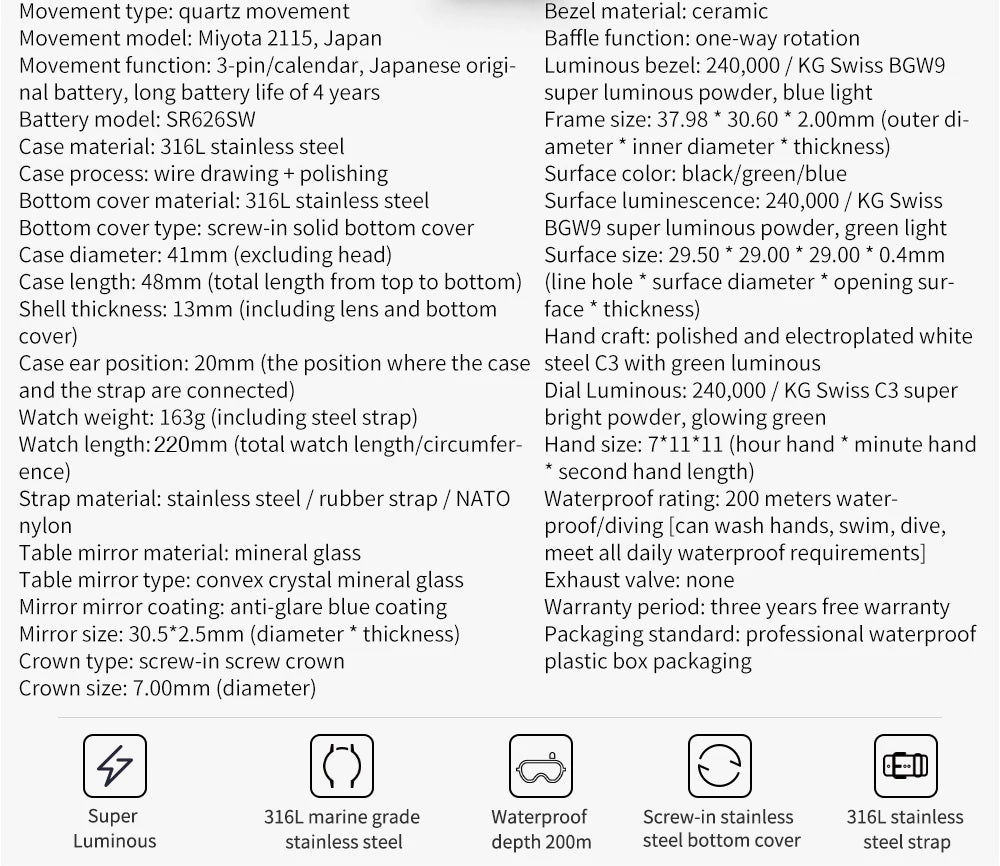 Waterproof rating: 200 meters waterproof/diving [can wash hands, swim, dive, meet all daily waterproof requirements]