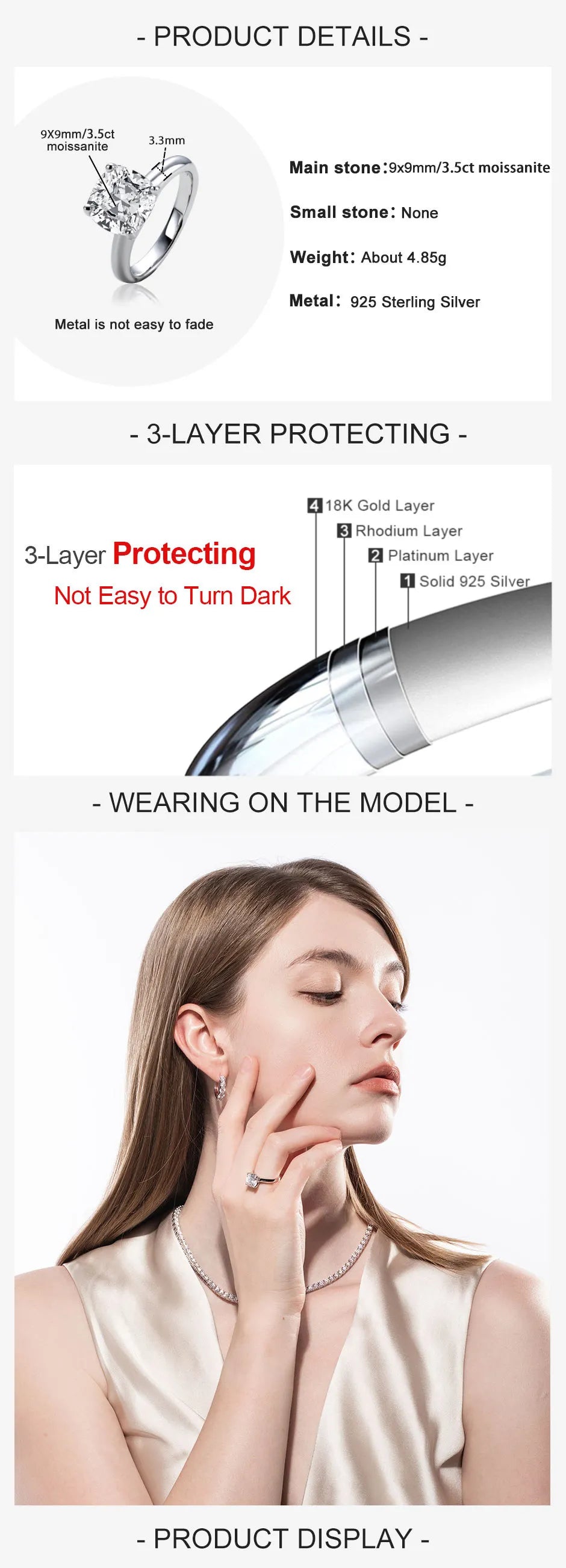 AnuJewel 3.5ct D Color Cushion Cut Moissanite Engagement Wedding Ring 925 Sterling Silver Rings For Women Jewelry Wholesale