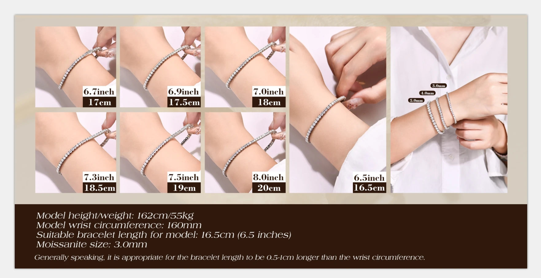ATTAGEMS 4.0mm 5.0mm DVVS1 Pass Diamond Test Round Cut Moissanite Tennis Bracelet White Gold Plated 925 Silver Jewelry for Women