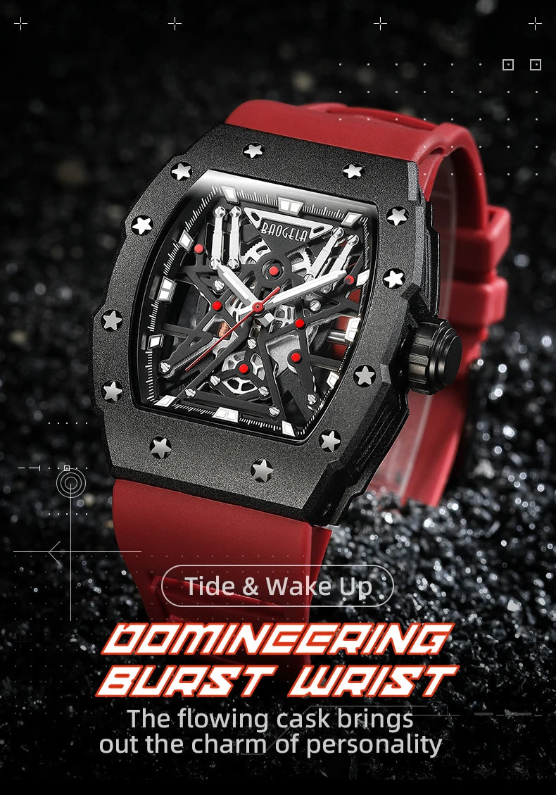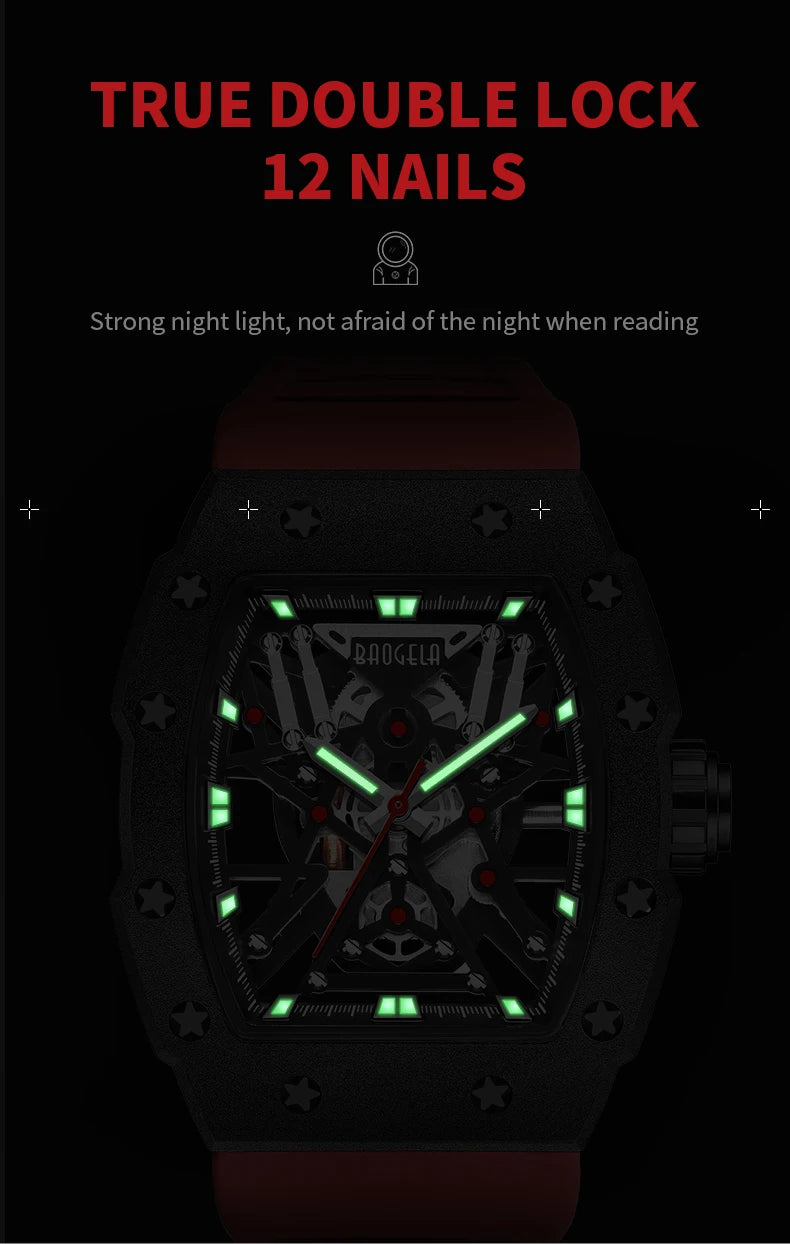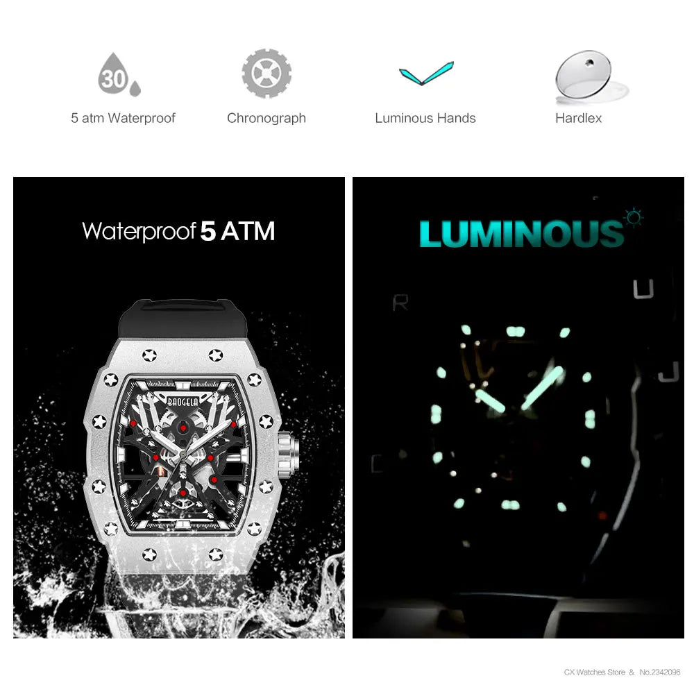 BAOGELA Black Stainless Steel Watch Men Military Sport Analog Quartz Wristwatch with Silicone Strap Luminous Hands Relogio 4147
