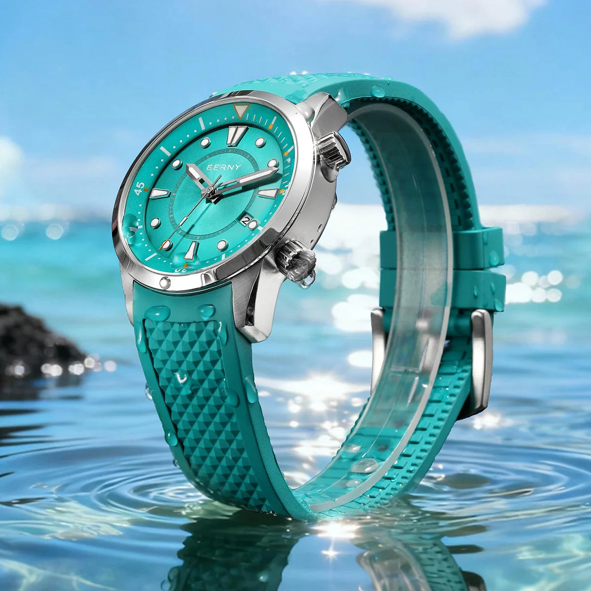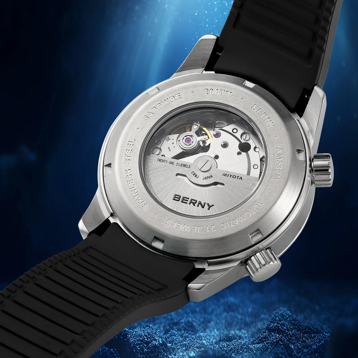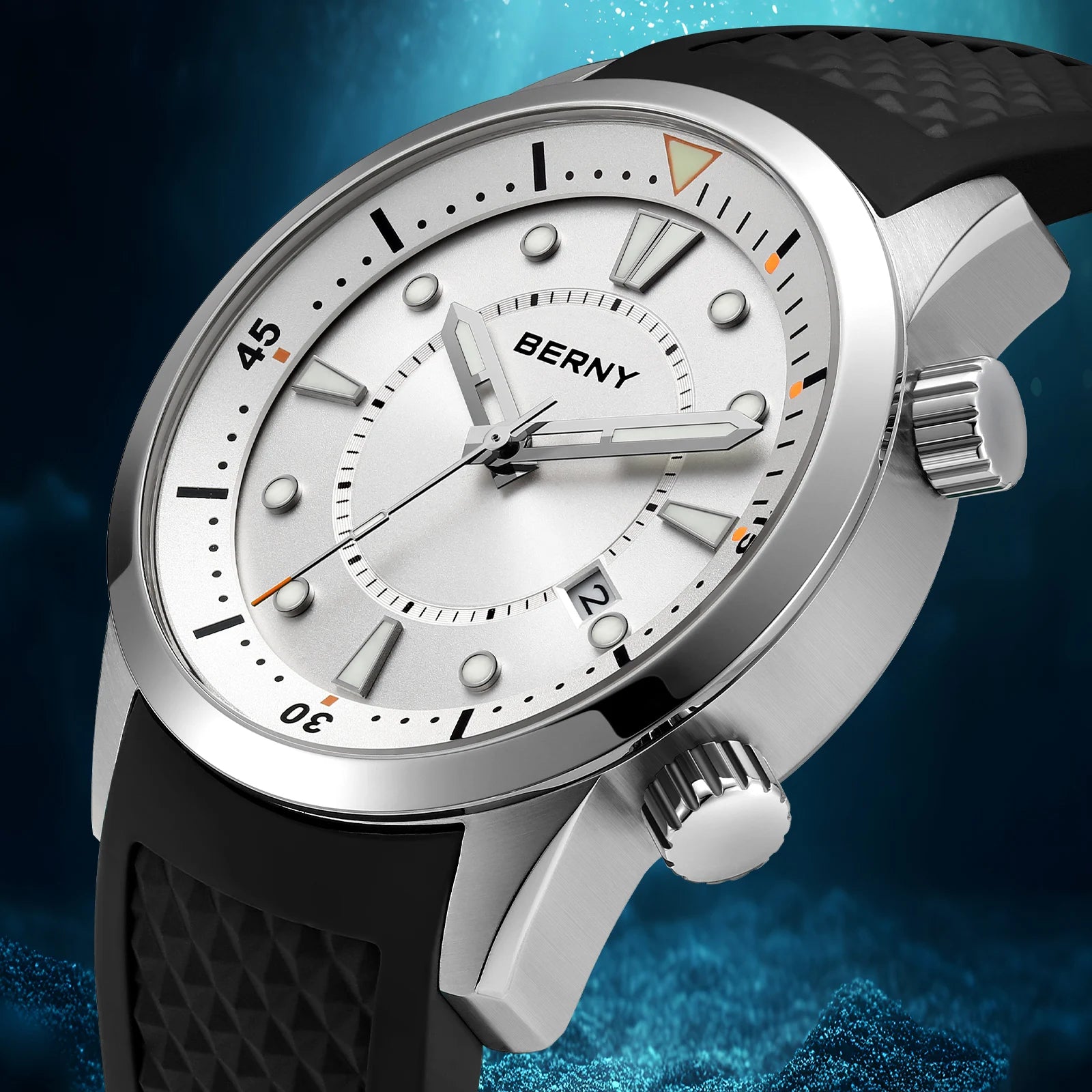 BERNY Automatic Diver Men Watch 200M Waterproof Miyota 8215 Sappire AR Coated Silicone Sports Swim Wristwatch Men's Diver Watch