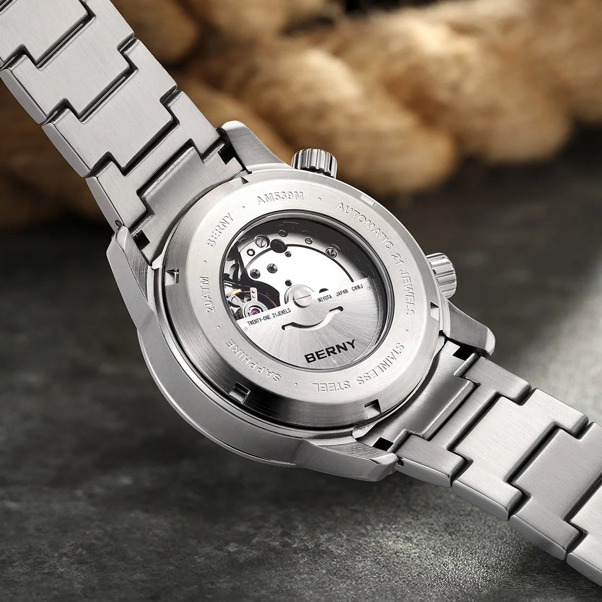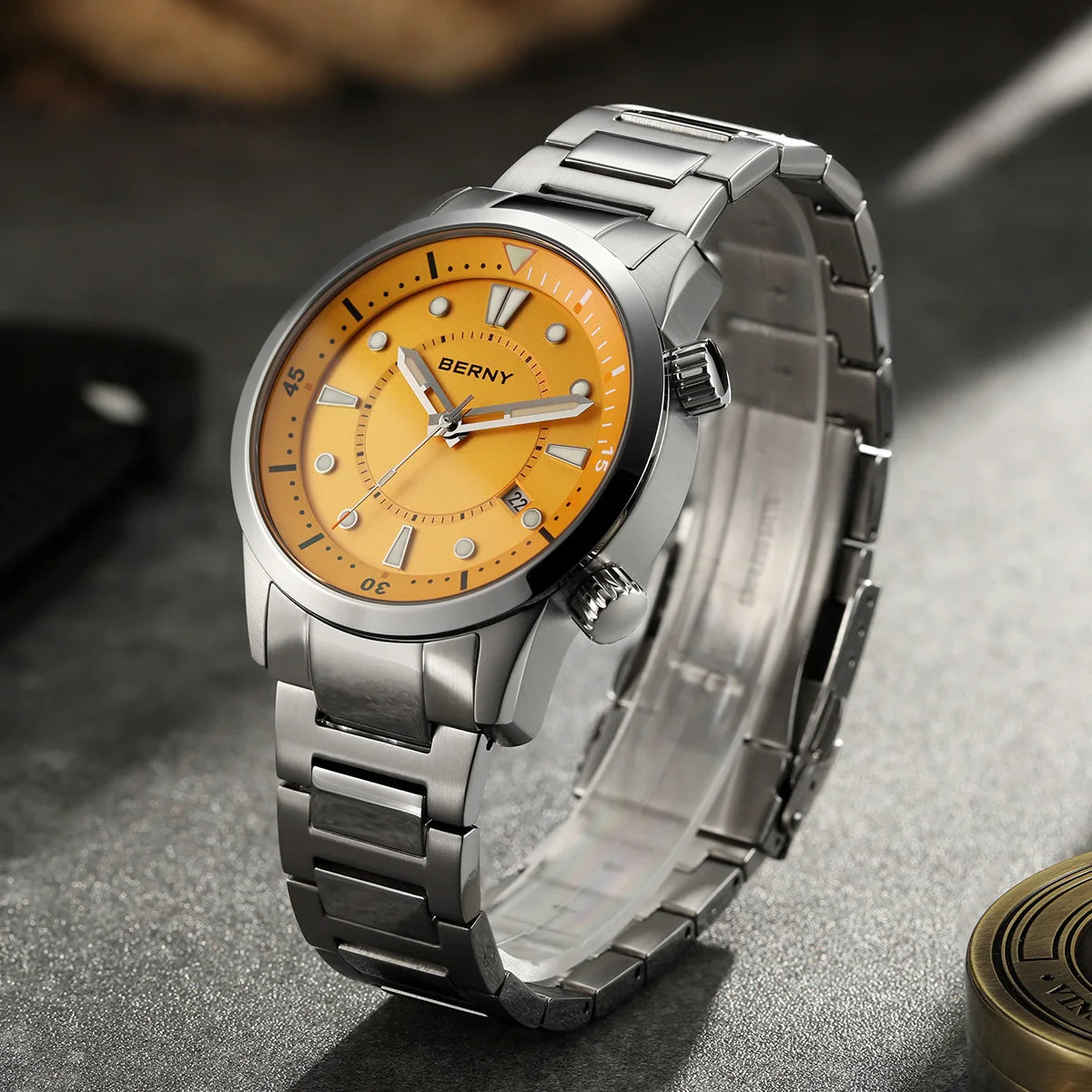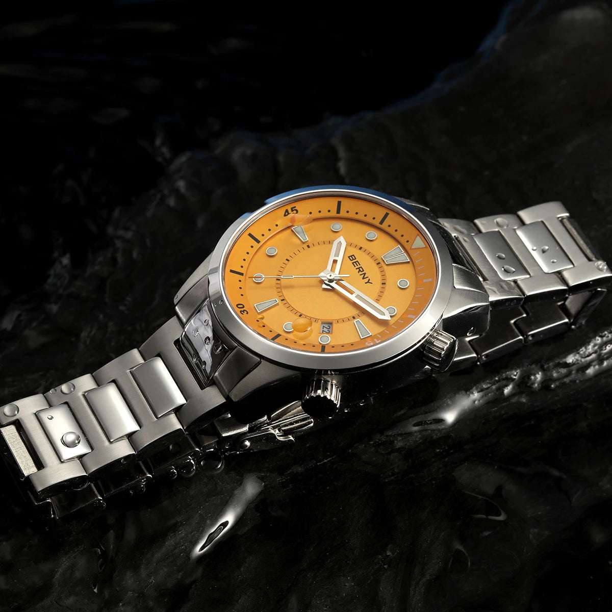 BERNY Automatic Diver Men Watch 200M Waterproof Miyota 8215 Sappire AR Coated Silicone Sports Swim Wristwatch Men's Diver Watch