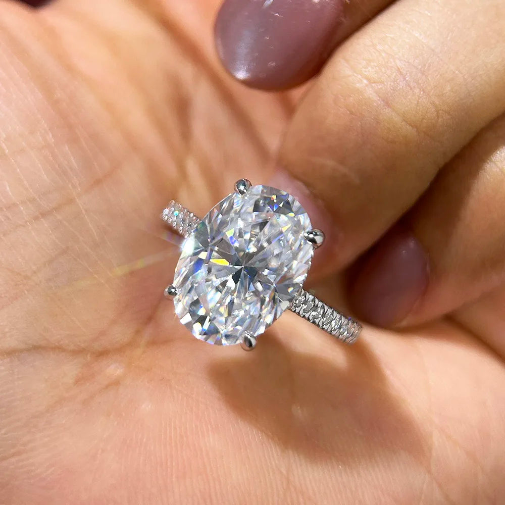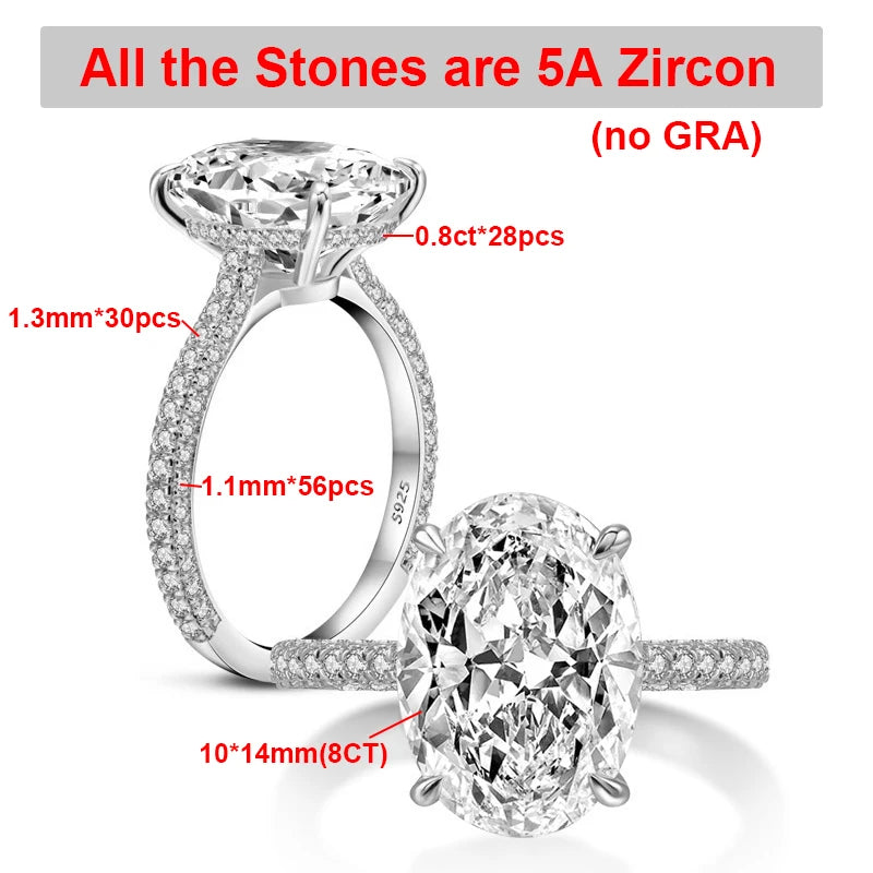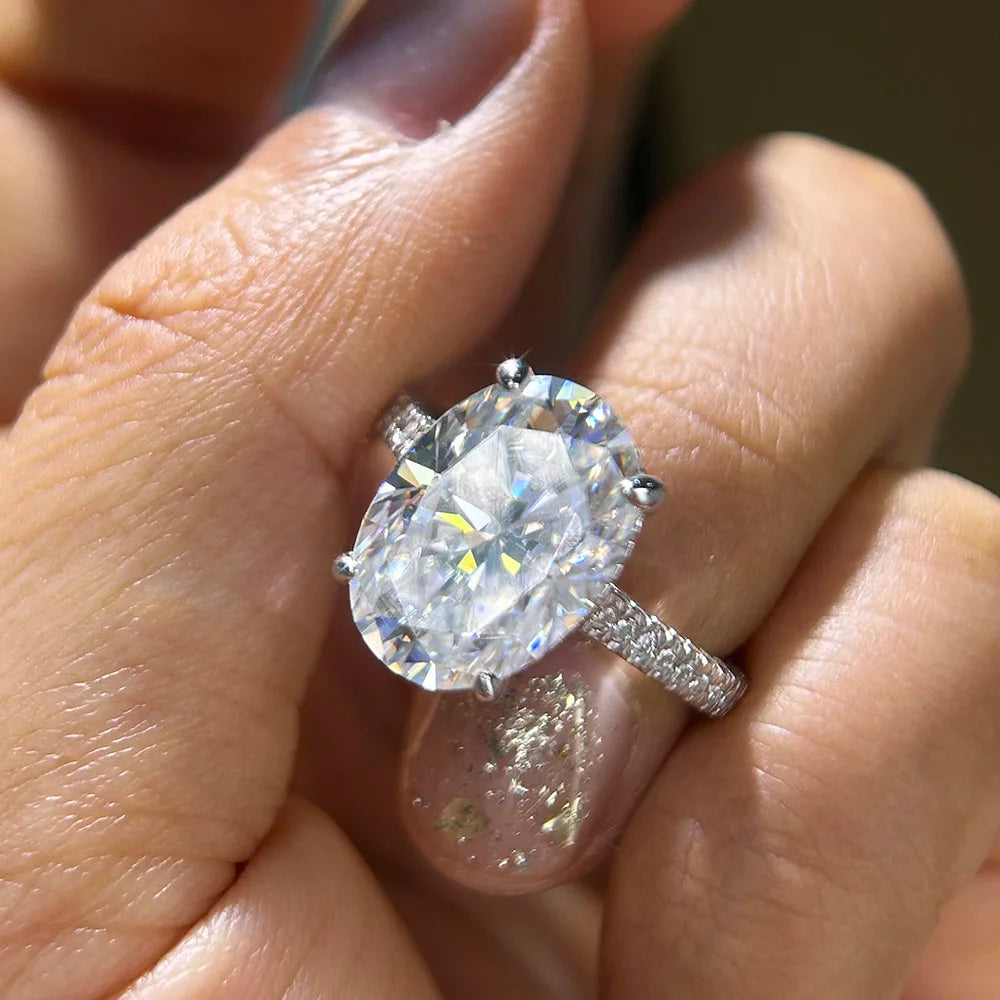 BXINY 8CT Oval Cut All Moissanite Ring 925 Sterling Silver for Women Sparkling Lab Diamond Wedding Band Jewelry with Certificate
