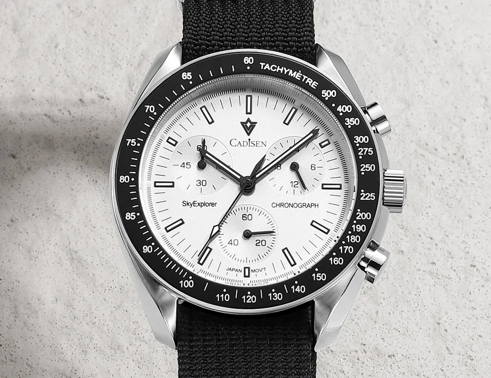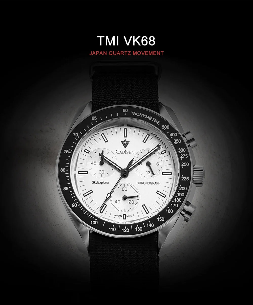 CADISEN New Men's Watches Luxury Quartz Wrist Watch For Men Sapphire AR Coated Crystal Canvas VK68 Speed Chronograph Automatic