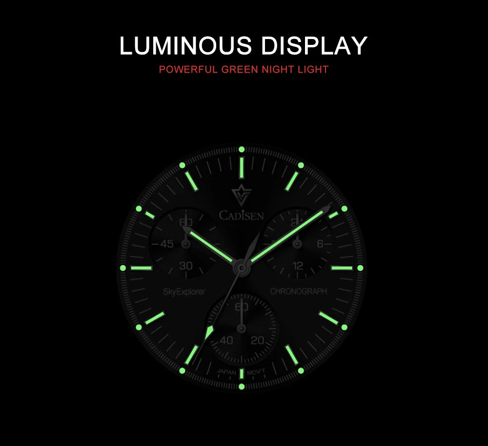 CADISEN New Men's Watches Luxury Quartz Wrist Watch For Men Sapphire AR Coated Crystal Canvas VK68 Speed Chronograph Automatic