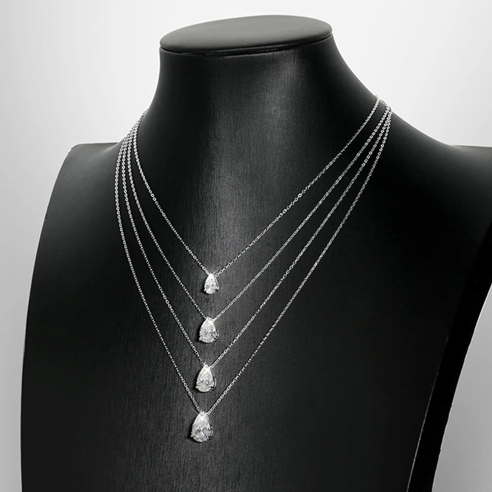 COSYA 1/2/3/4CT Pear Cut D Color Moissanite Rings/Necklace For Women S925 Silver VVS1 Lab Diamond Waterdrop Pendant Jewely Gift