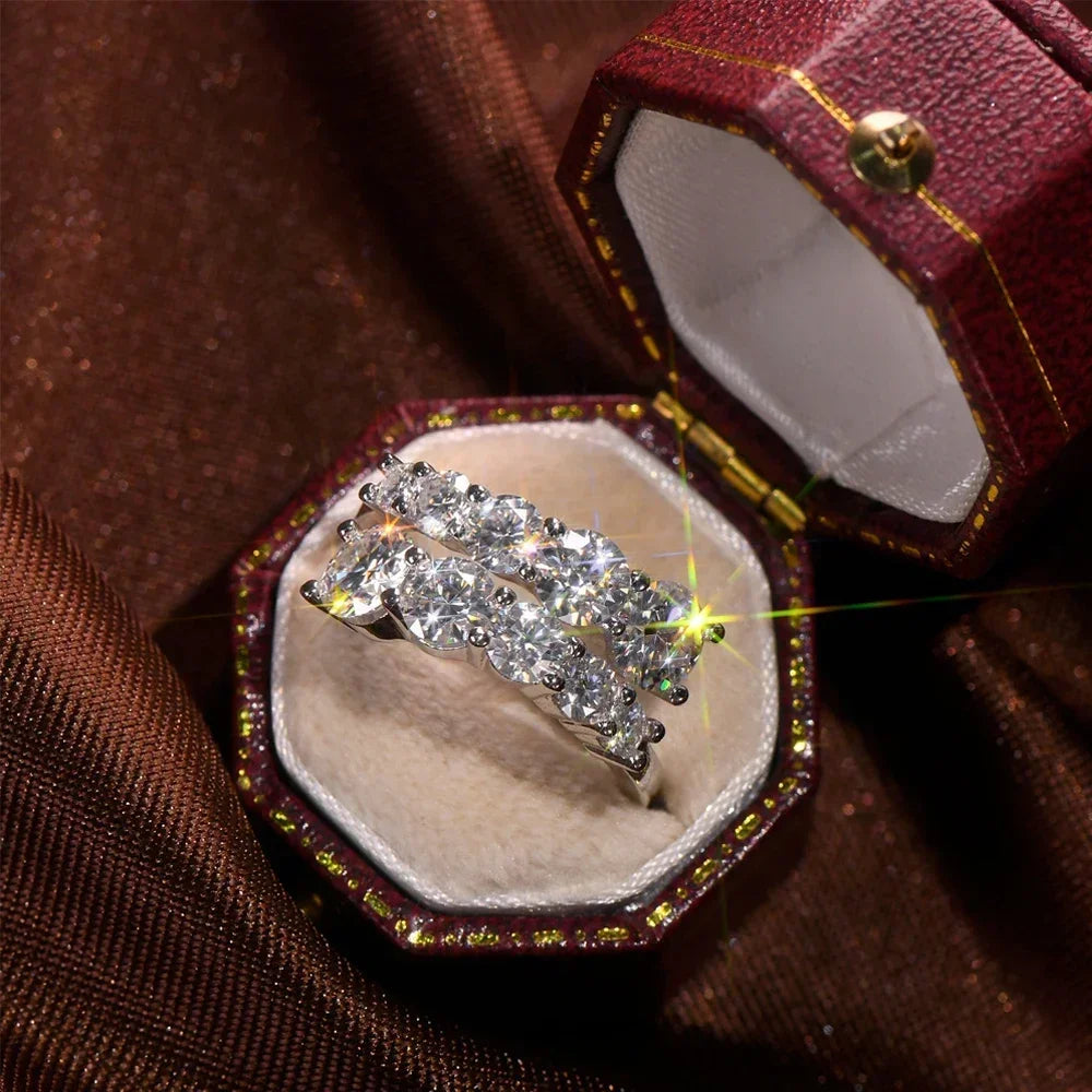 Colorless Moissanite Bridal Ring: Double Row Moissanite Diamond rings
