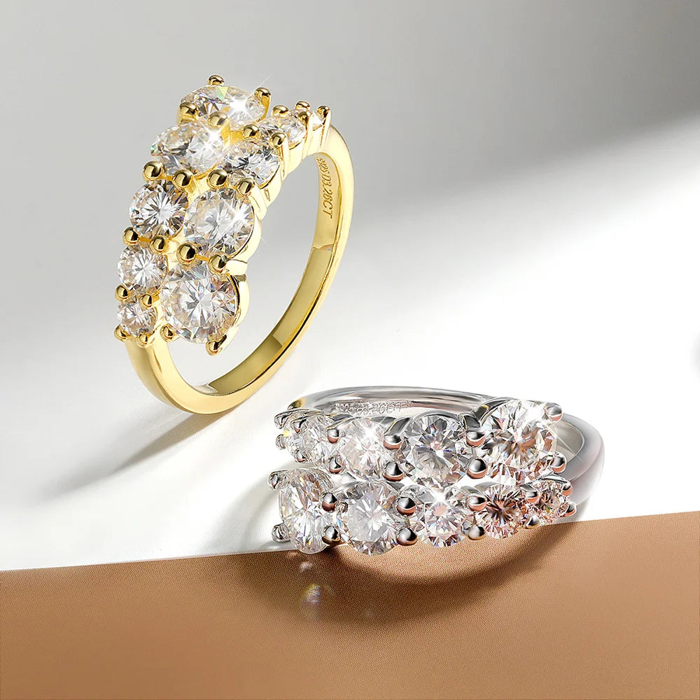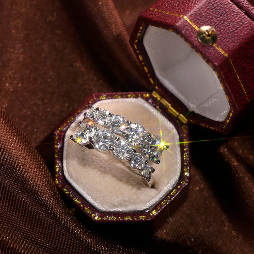 FEOBUR 3.26CT 10 Gems Full Moissanite Rings for Women 925 Sterling Silver Sparkling Lab Diamond Wedding Band Tail Ring Jewelry