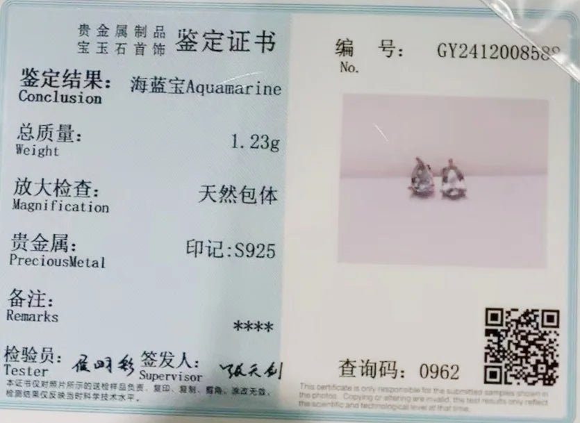 FS Natural Aquamarine S925 Sterling Silver Studs Earrings With Certificate Fine Fashion Charm Weddings Jewelry For Women MeiBaPJ