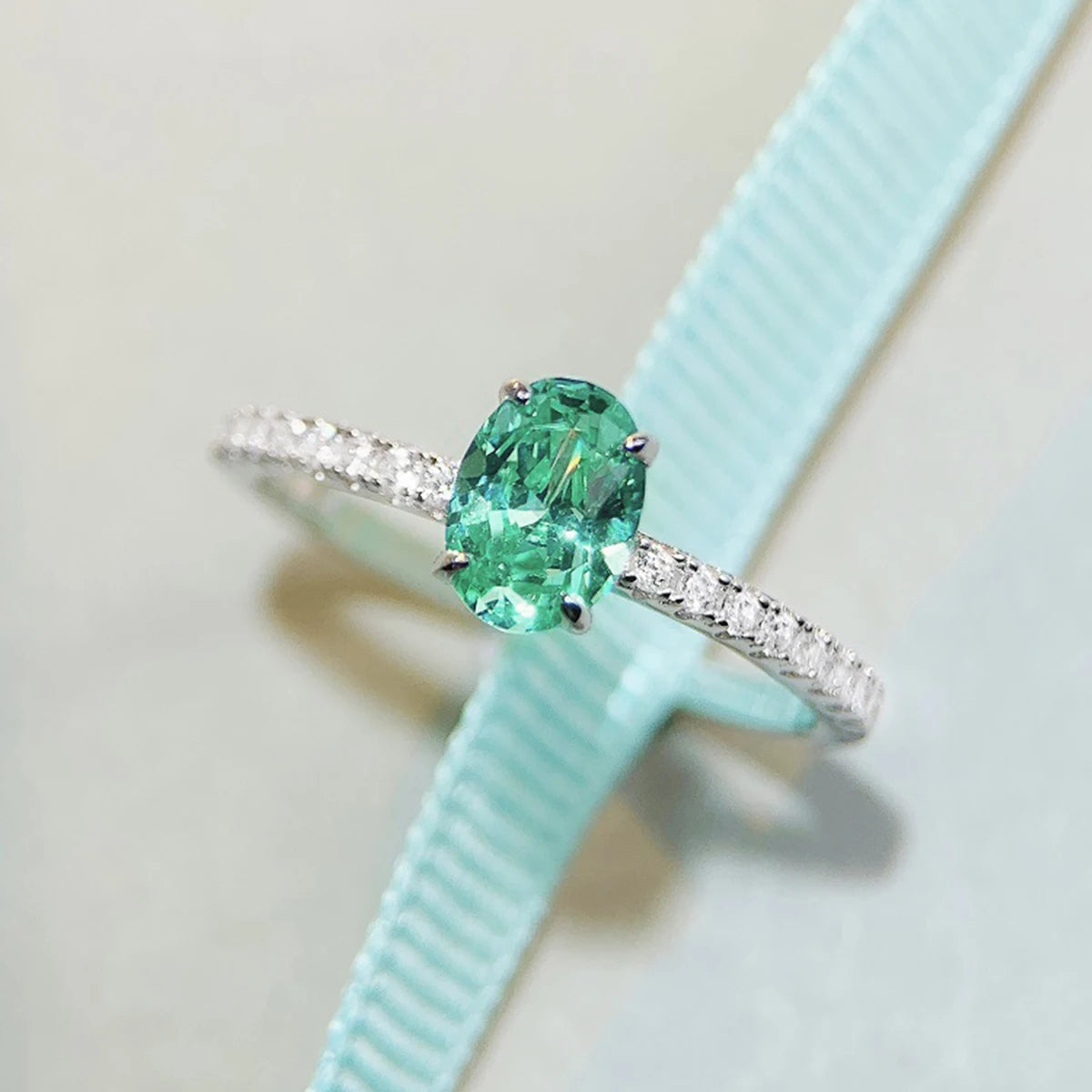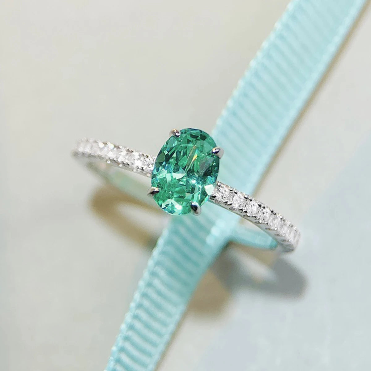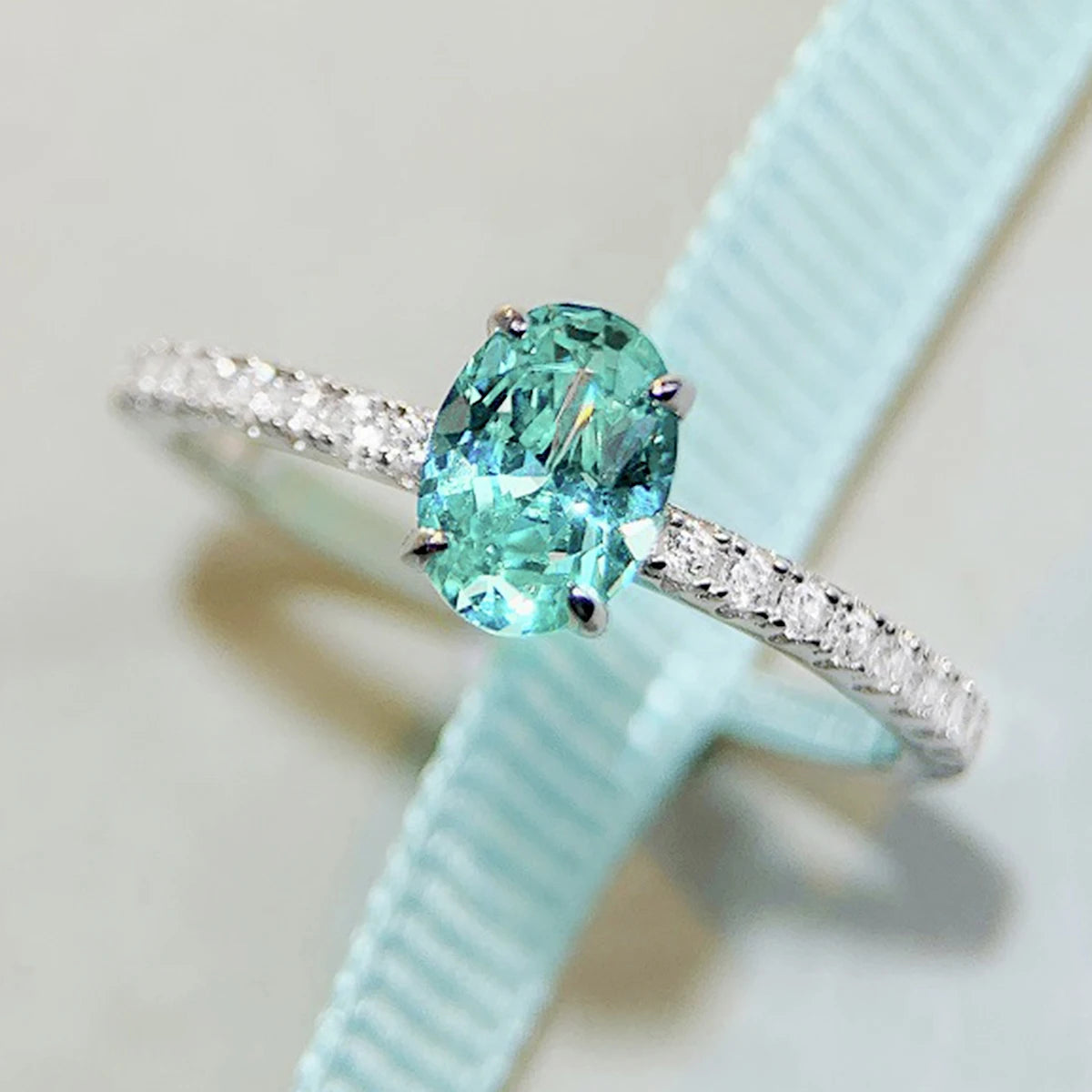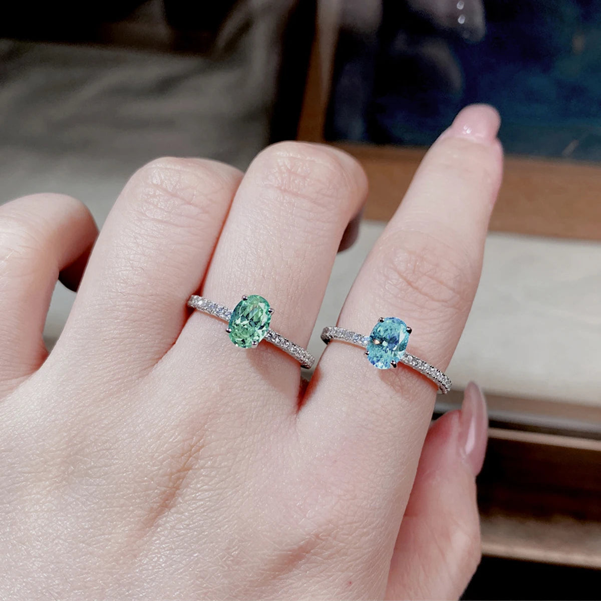Genuine S925 Sterling Silver Ring 1CT Oval High Carbon Zirconia With CZ Tri-Color Jewelry Wedding Engagement Anniversary Gift