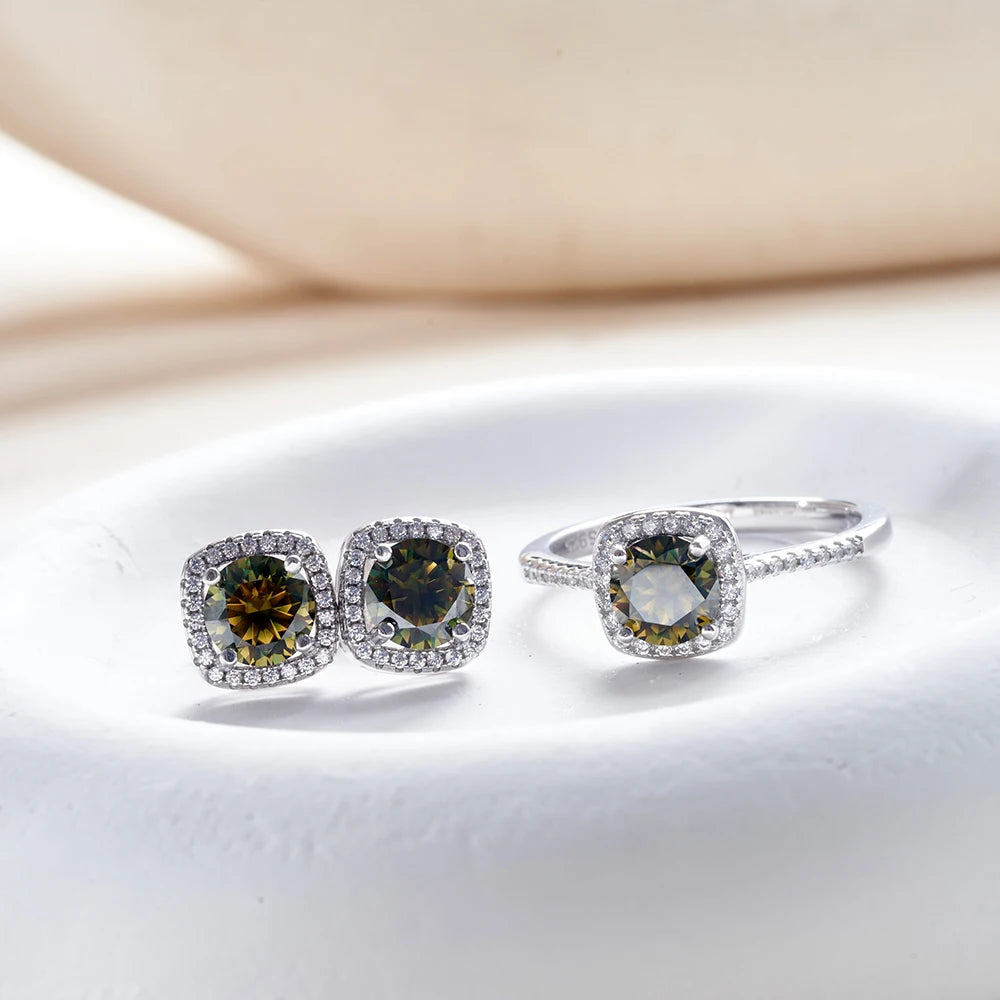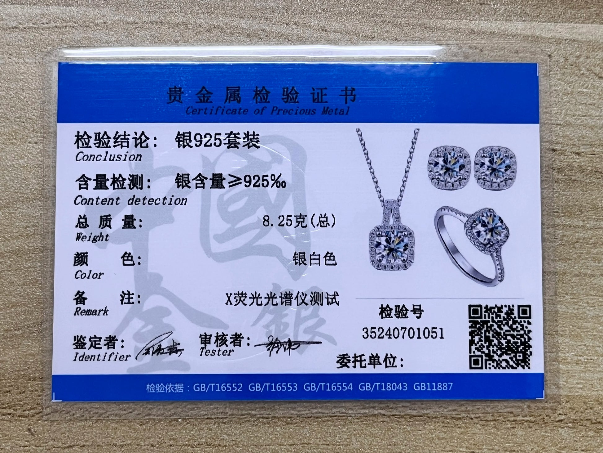 JoyceJelly S925 Sterling Silver jewelry for women 1 carat moissanite diamond 3 pieces set necklace ring earrings wedding party
