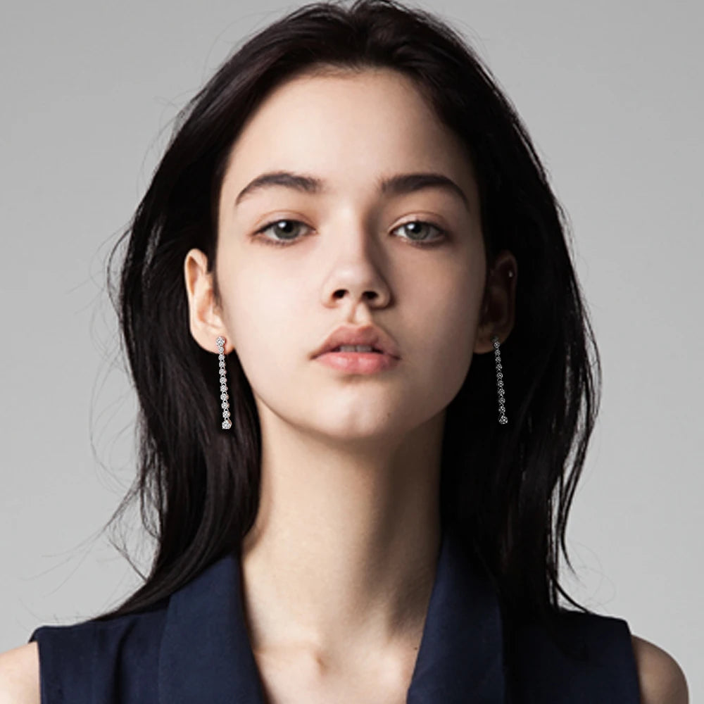 Long Tassels Moissanite Drop Earrings 925 Sterling Silver 18k Gold Sparkling Full Diamond Tennis Stud Earring For Womem Party