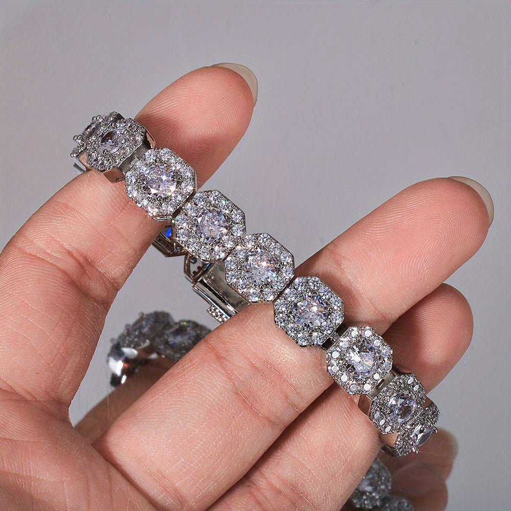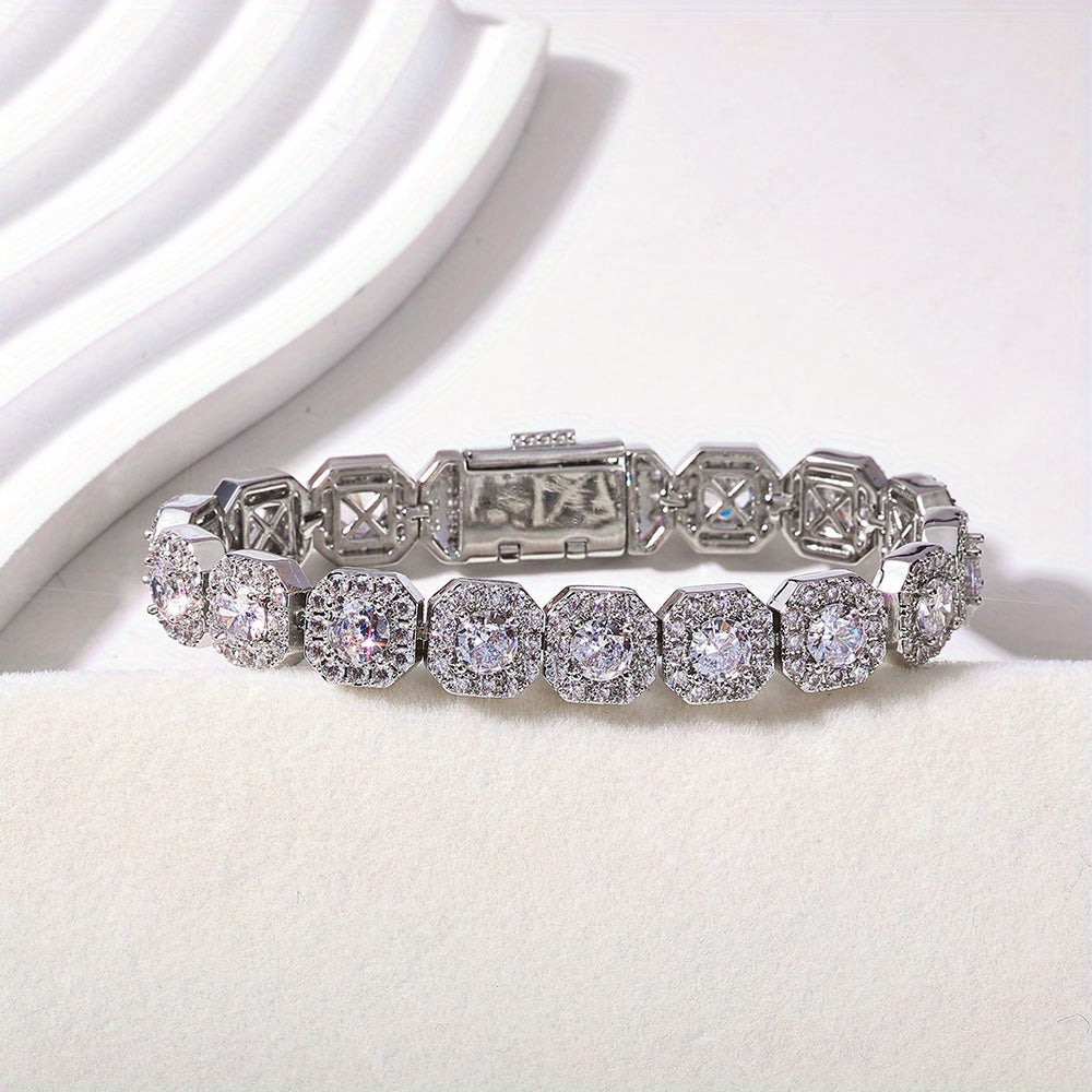 LYEE CYEE Men'S Hip Hop Style Sugar Cube Bracelet - Elegant Copper Band with Sparkling Synthetic Cubic Synthetic Zircon, Versatile Fashion Accessory for Casual or Party Wear, Hip Hop Bracelet