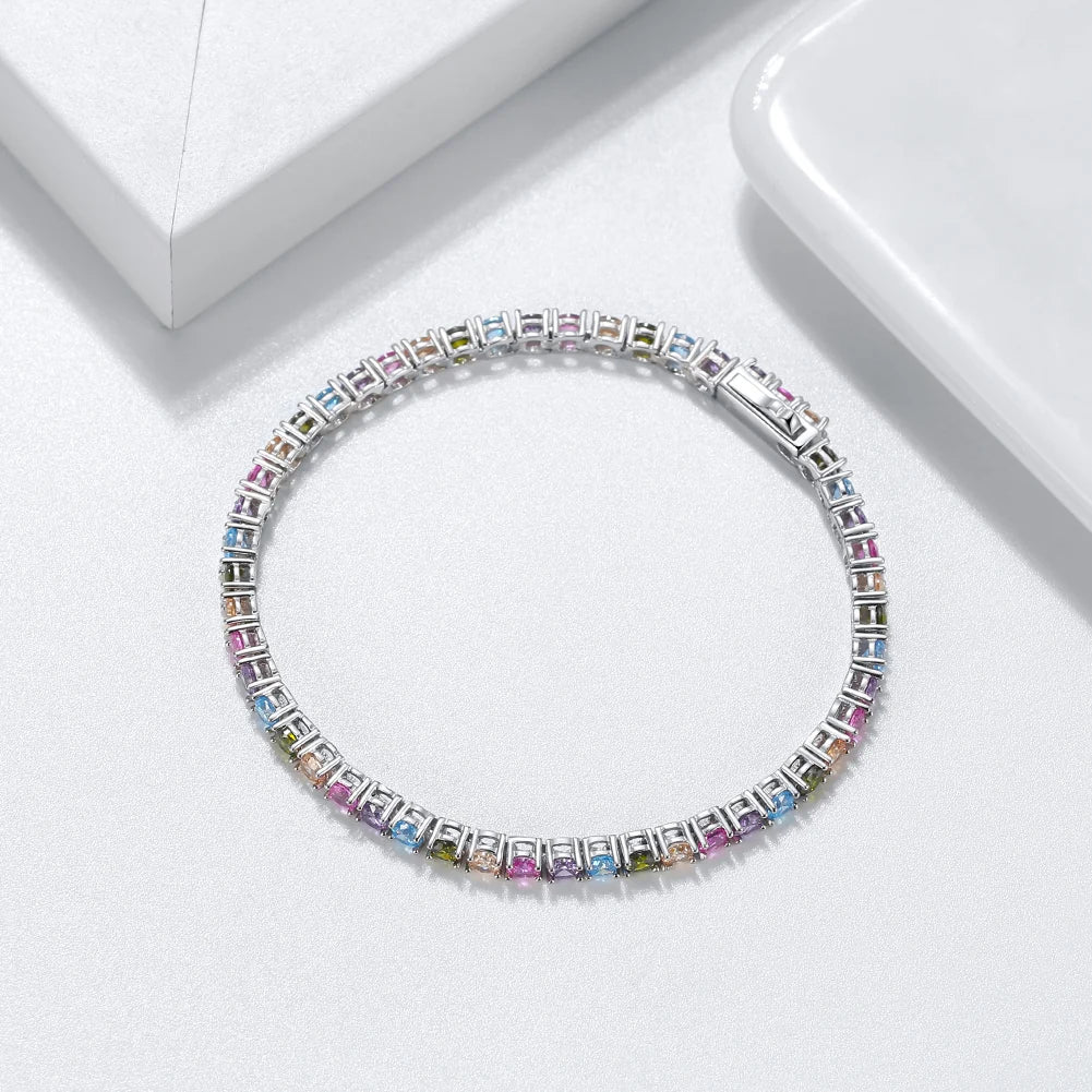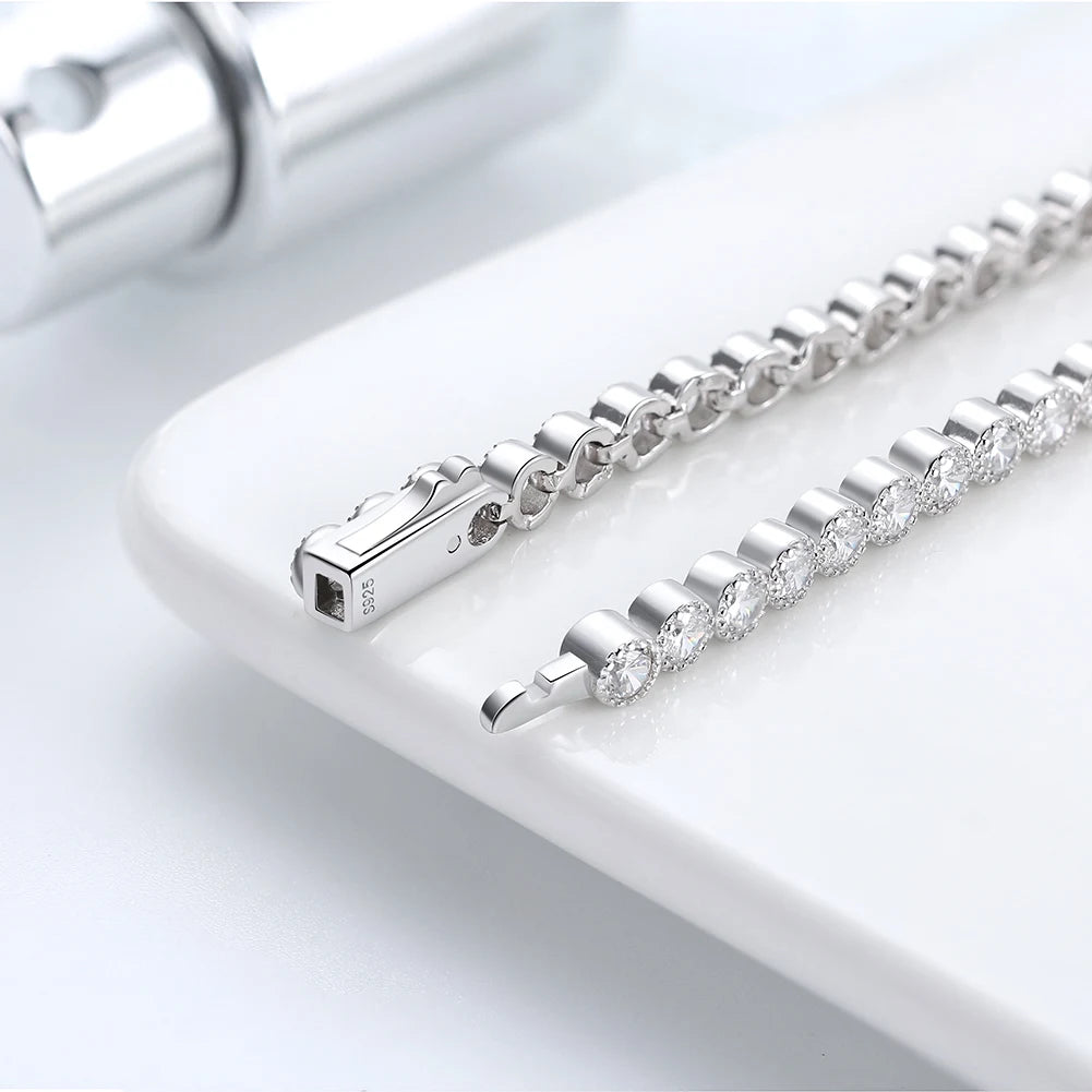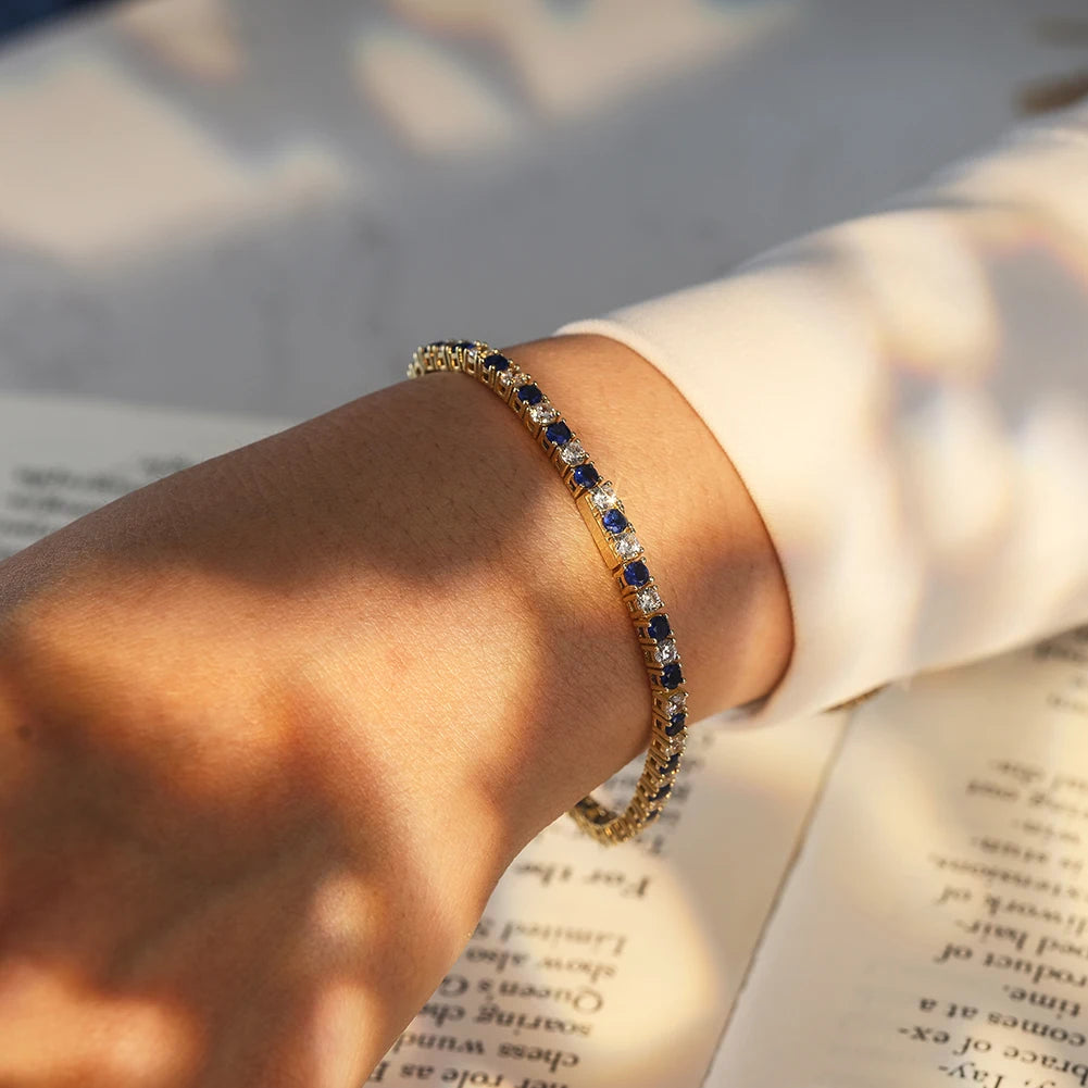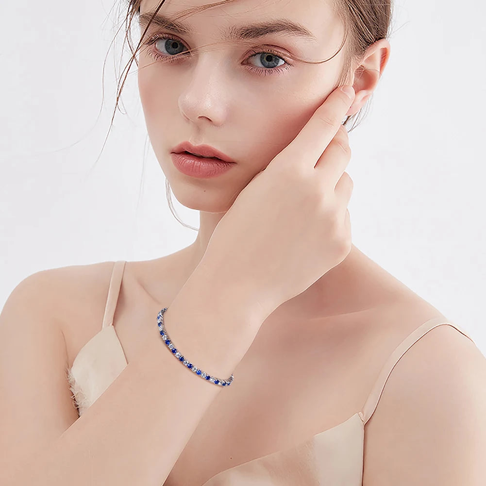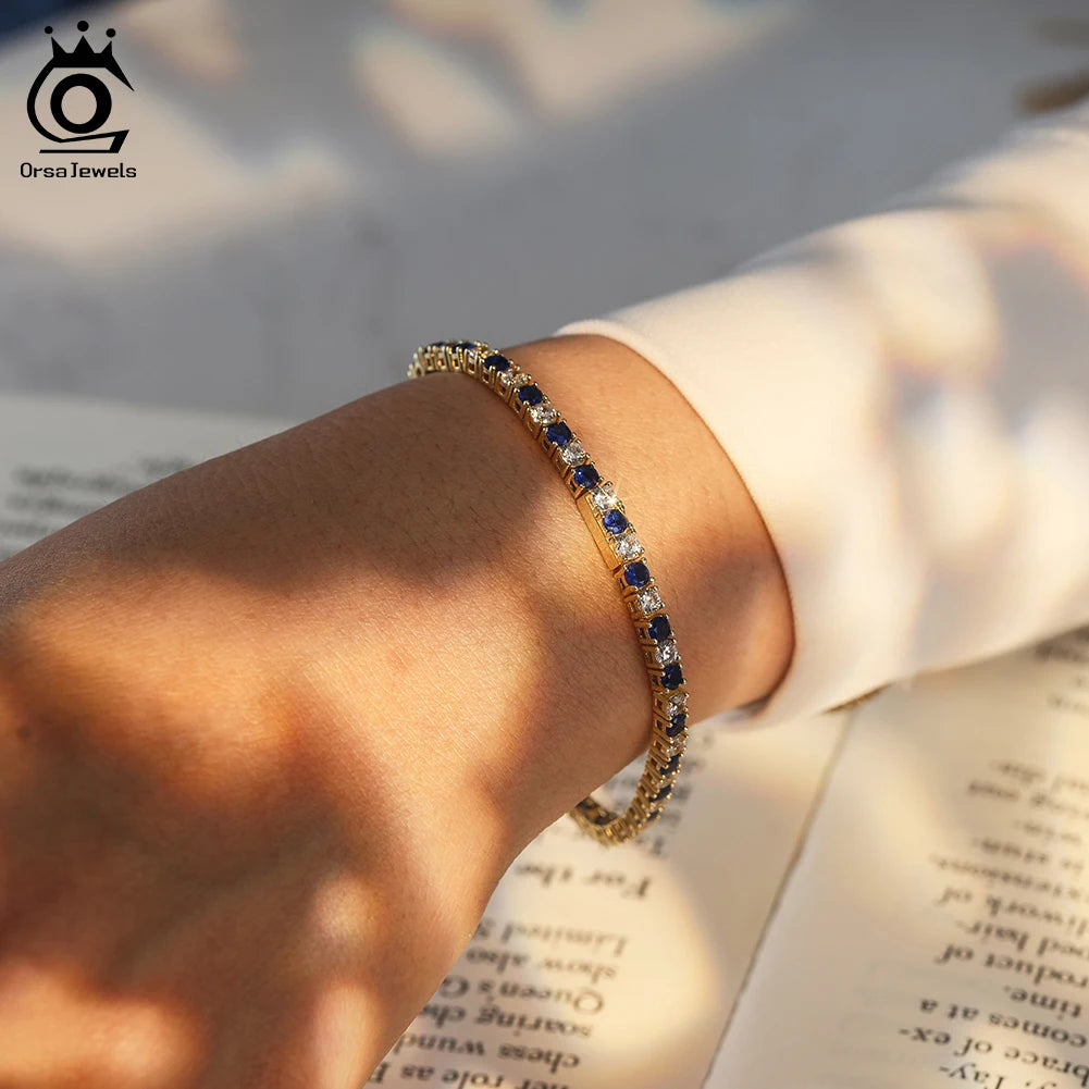 ORSA JEWELS Exquisite 3mm Sapphire Blue Sparkling Tennis Bracelet S925 Sterling Silver Cubic Zirconia Fashion CZ Bracelet SB137