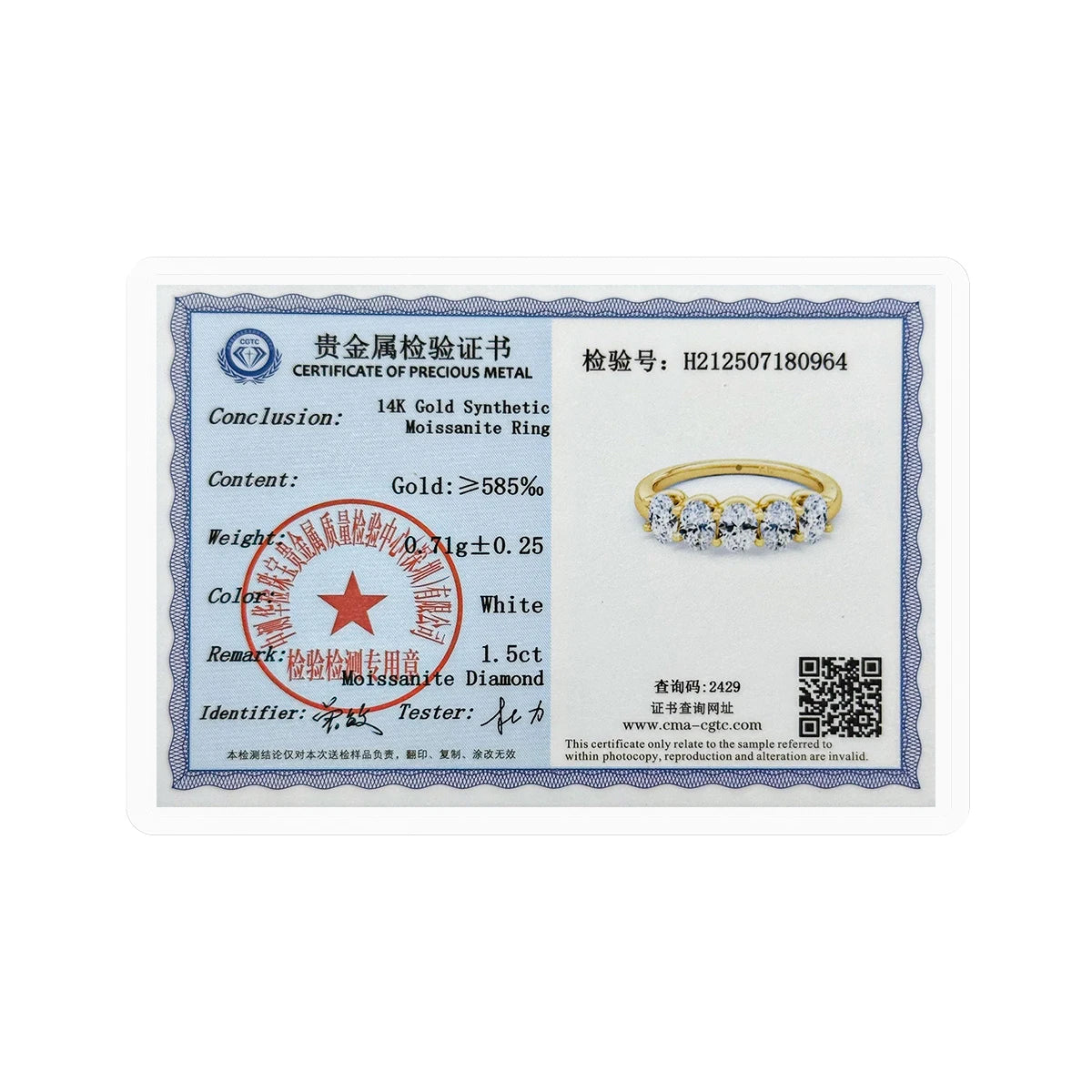 Oval 14K Yellow Gold Engagement Ring GRA Certified Moissanite Row Band 5 Stone 1.5ctw 100% Authentic for Women Wedding Jewelry