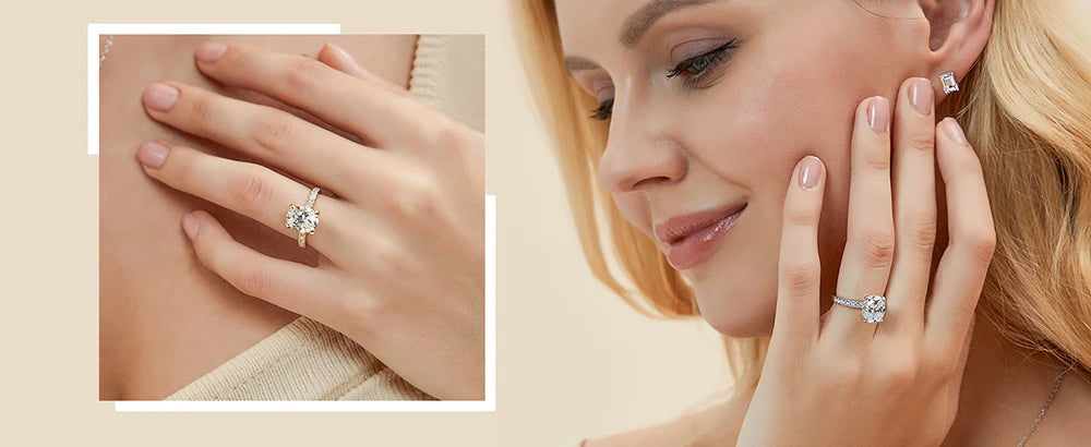 Oval Cut Full Moissanite Engagement Ring for Women S925 Silver1/2/3/4Carat Hidden Halo Diamond Wedding Rings with Certificates