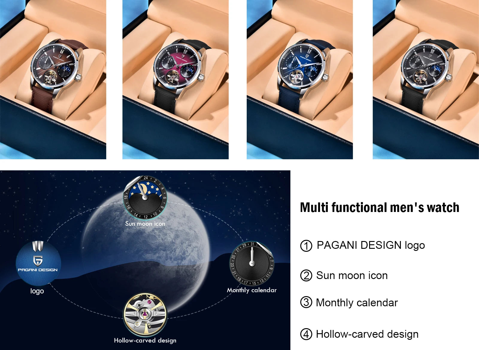 PAGANI DESIGN Top Luxury Men Clock Luminous Hollow Tourbillon Automatic Wristwatch Mechanical Stainless Steel Men's Watch Reloj