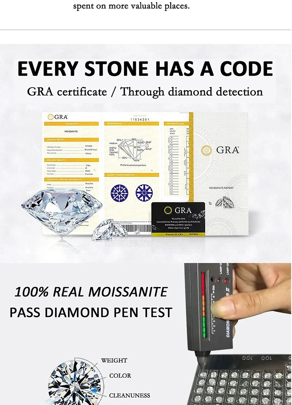 Moissanite Weight: 0.5CT/1CT/2CT/Ps