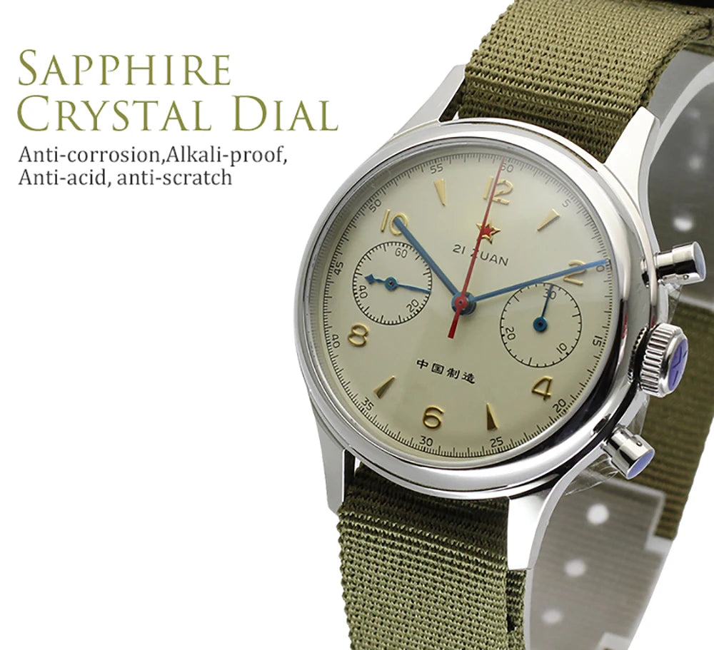RED-STAR 38mm Men's 1963 Chronograph Mechanical Watch Pilot with Seagull Movement ST1901 Air Force Aviation Sapphire Goose 40mm