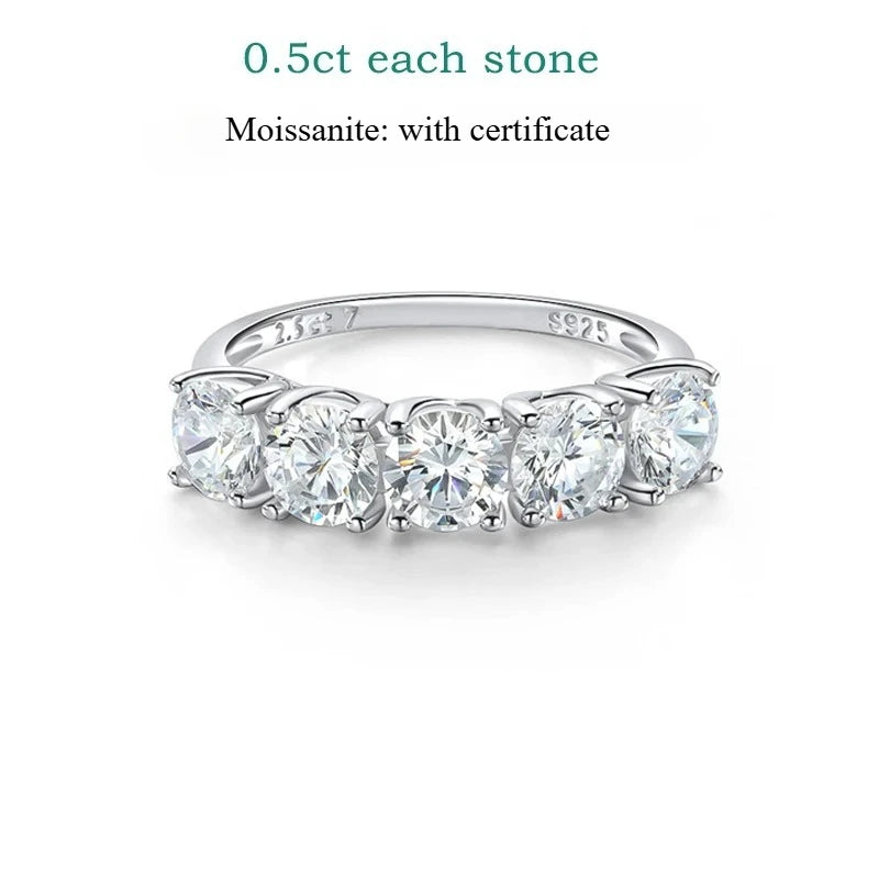 Smyoue 2.5/5CTTW D Color Genuine Moissanite Rings for Women 5 Gemstone Bridal Wedding Jewelry 925 Sterling Silver Wholesale Ring