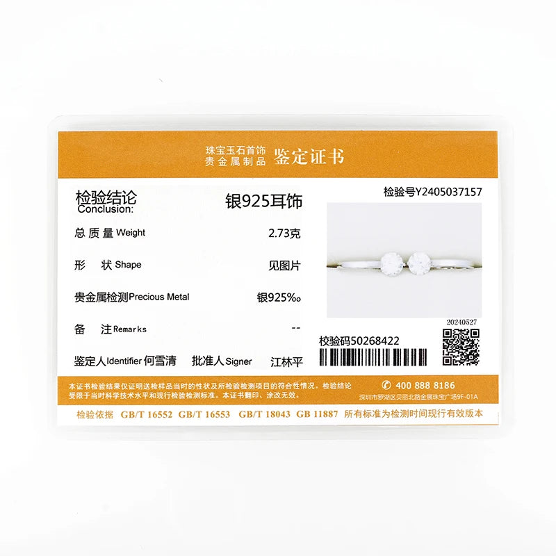 Packing: 1pc moissanite earrings with Certificates