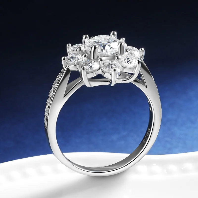 TBCYD 6MM D Color Sunflower Full Moissanite Rings 2.126cttw S925 Sterling Silver Wedding Engagament For Women With GRA Jewelry