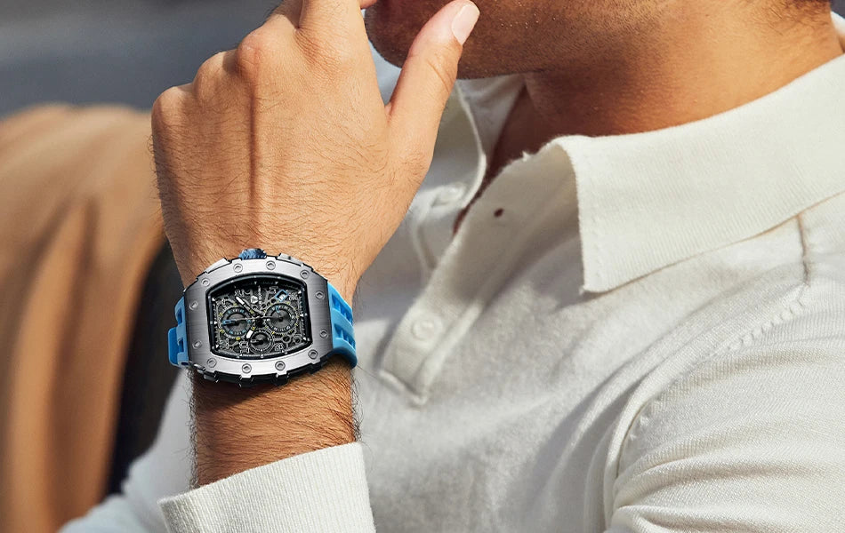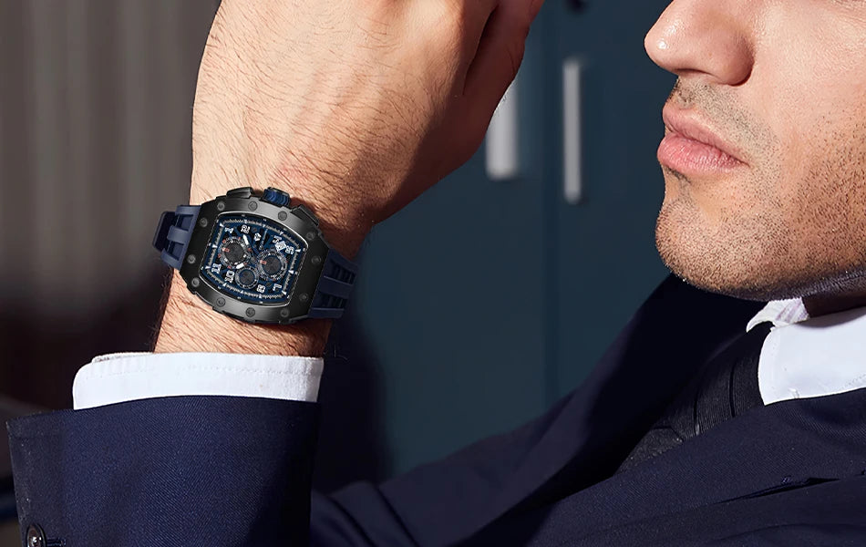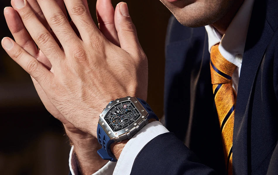 TSAR BOMBA Watch for Men Luxury Brand Tonneau Design Waterproof Clock Stainless Steel Wristwatch Fashion Rectangle Mens Watch