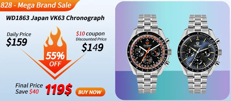 Watchdives WD1863 Quartz Watch VK63 Chronograph Movement Bubble Sapphire Crystal 10Bar Waterproof Luminous 39mm Vintage Watches