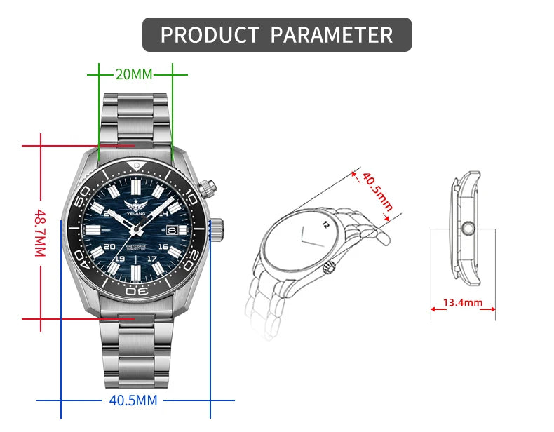 Yelang V1038 40mm Men Diving Watch Human Kinetic Energy Watch Brand Watch 300m Waterproof Watch luminous Japan PX82 Sapphire